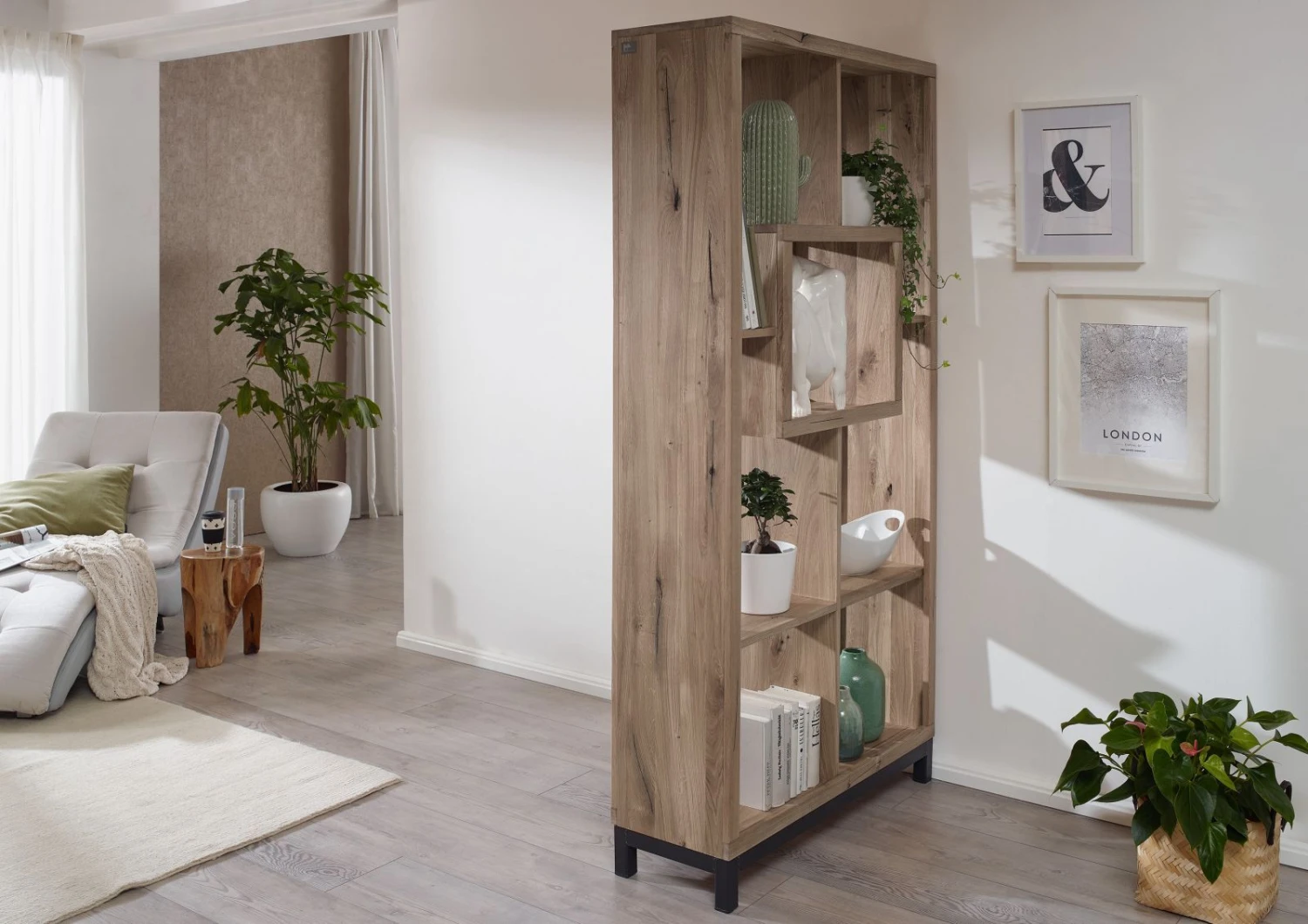 La collection VILLANDERS combine le bois de chêne sauvage, et ses fissures naturelles, avec des éléments métalliques noirs. Cette série de meubles modernes de haute qualité est disponibles en trois teintes élégantes. Qu’il s’agisse de la couleur tabacco brown, bianco ou bois naturel, les trois variations de cette série VILLANDERS apporteront charme individuel à votre intérieur. Le chêne sauvage se distingue non seulement par sa grande stabilité et sa qualité exceptionnelle, mais aussi par son aspect brut et son allure sauvage. En effet, son grain impressionnant, ses nombreux nuds et ses fissures naturelles, caractérisent la surface de chaque meuble rendant exclusif le mobilier de cette série très particulière. Pour un plus grand confort, tous les tiroirs et portes de ces meubles sont équipés de charnières et de glissières à fermeture en douceur.