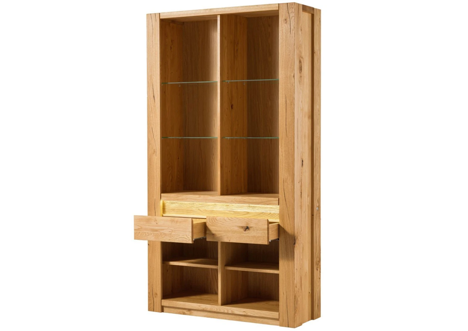 L´accent et le caractère de l´étagère vient de son bois : en chêne sauvage massif, simplement huilé, c´est un meuble qui apportera une ambiance chaleureuse et élégante à votre intérieur.