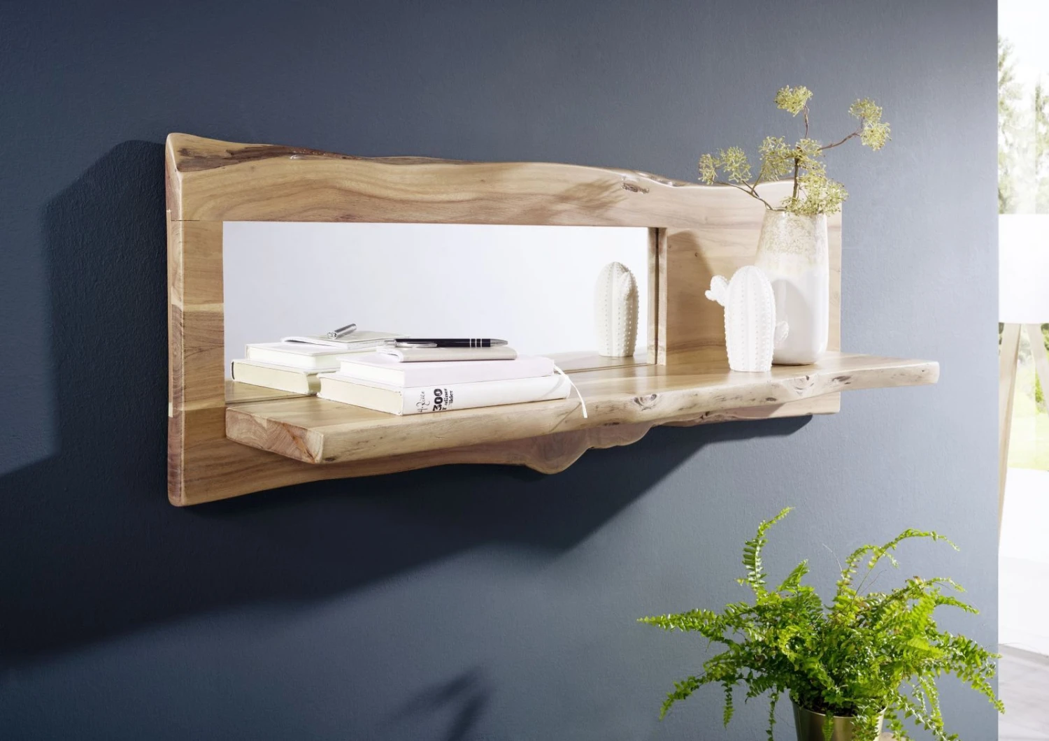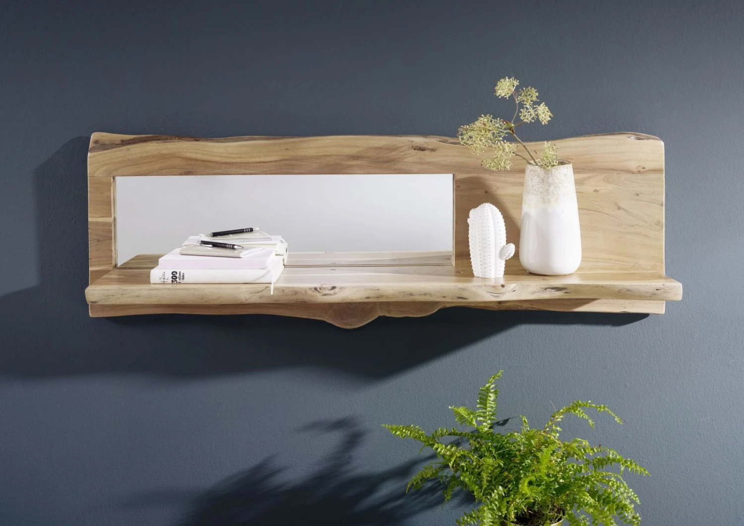 Description du produit Étagère murale 121×22 Acacia laqué Bois naturel Miroir inclu PURE ACACIA #705