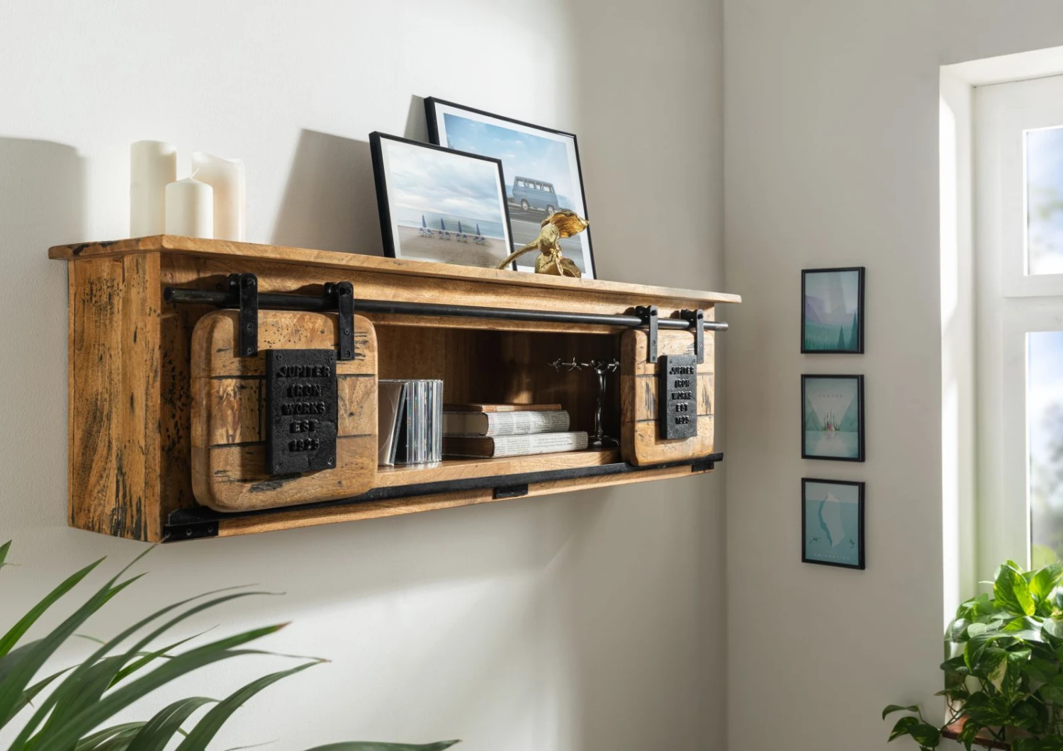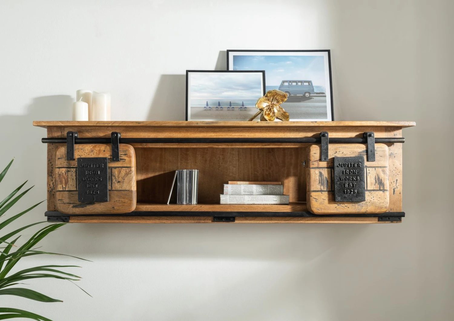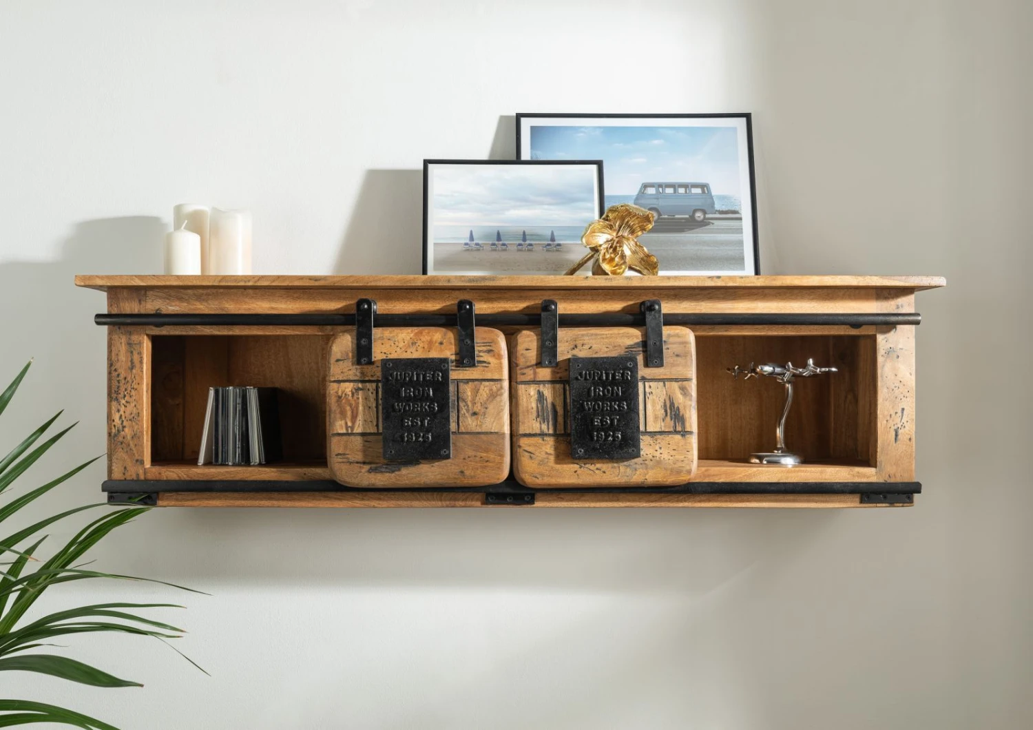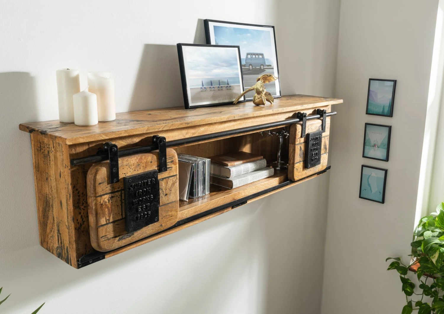 Description du produit Étagère murale 130×25 Manguier laqué Bois naturel RAILWAY #165