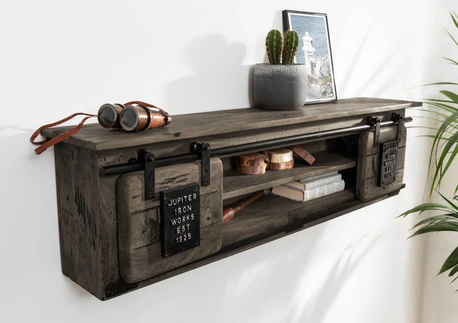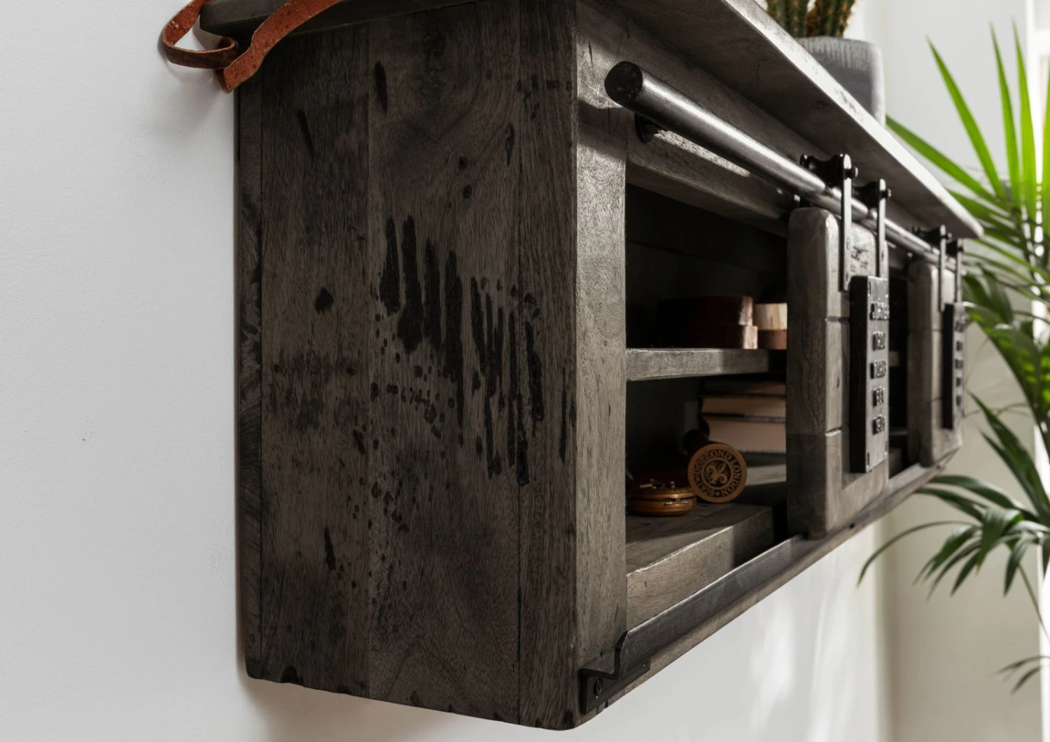 Description du produit Étagère murale 130×25 Manguier laqué Gris RAILWAY #257