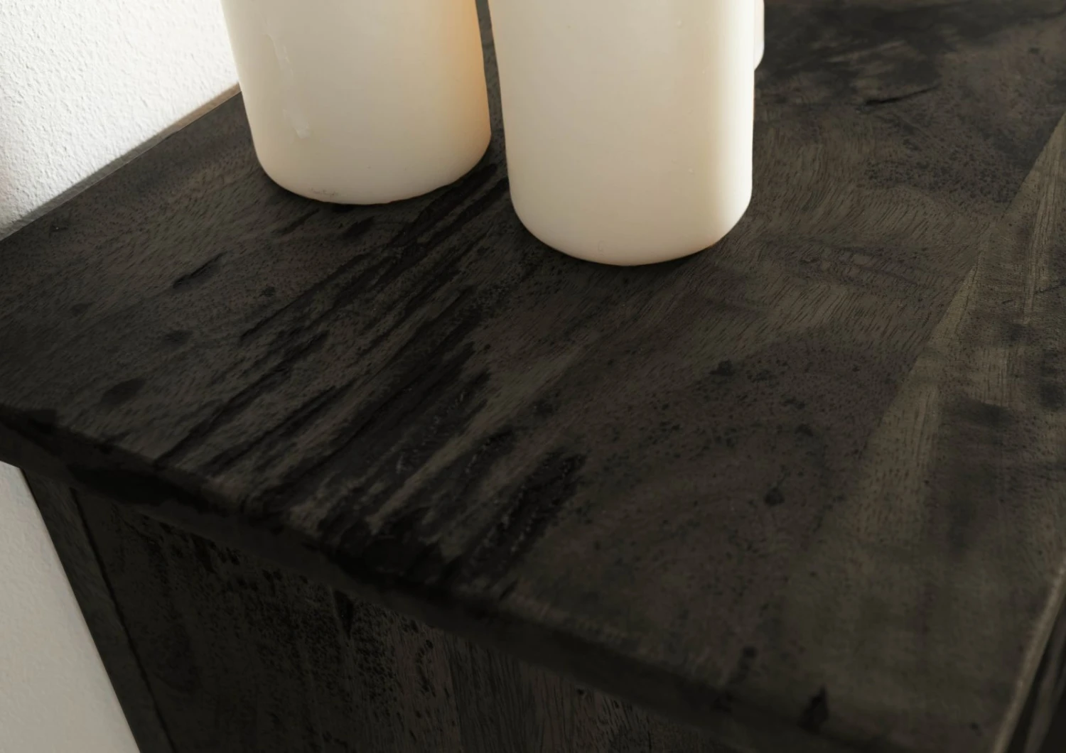 Nos meubles ne sont pas vernis, le bois est une matière vivante dont nous respectons la nature. Pour en assurer la longévité, nous vous invitons à l´entretenir et à le protéger contre les taches.