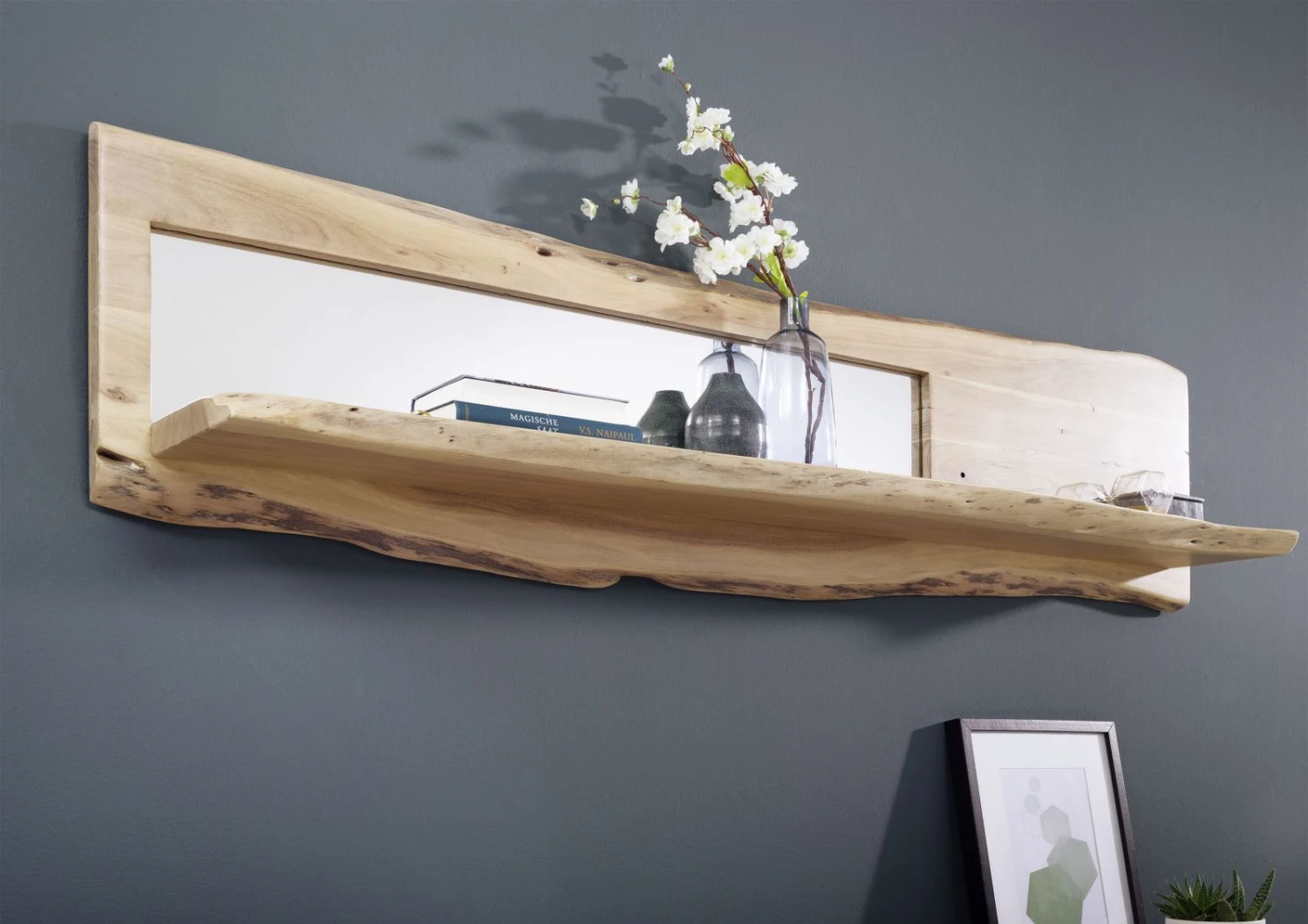 Description du produit Étagère murale 165×22 Acacia laqué Bois naturel Miroir inclu PURE ACACIA #706