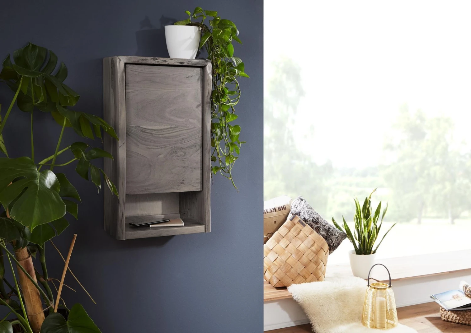Description du produit Étagère murale 40×20 Acacia laqué Gris taupe PURE ACACIA #602