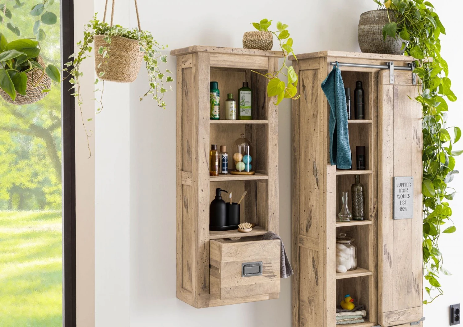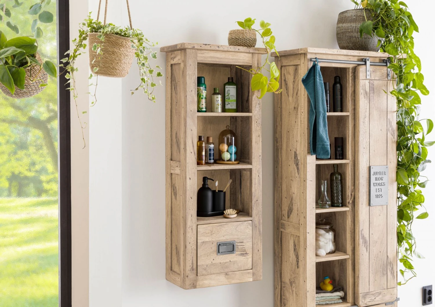 - armoire murale étroite en bois de manguier massif et métal