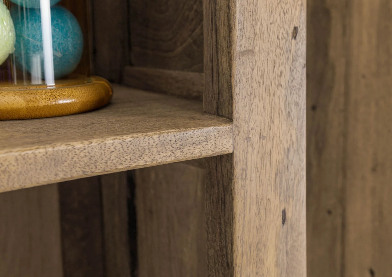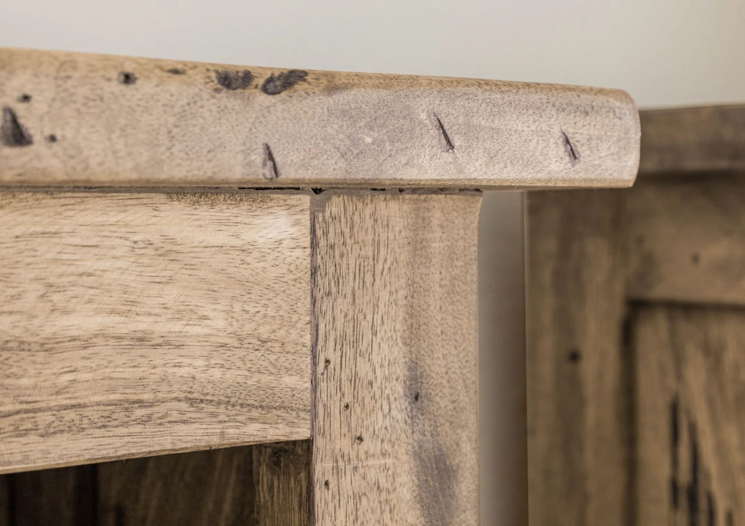 - bois massif et robuste, à l’aspect vieilli, avec marques visibles de rabotage