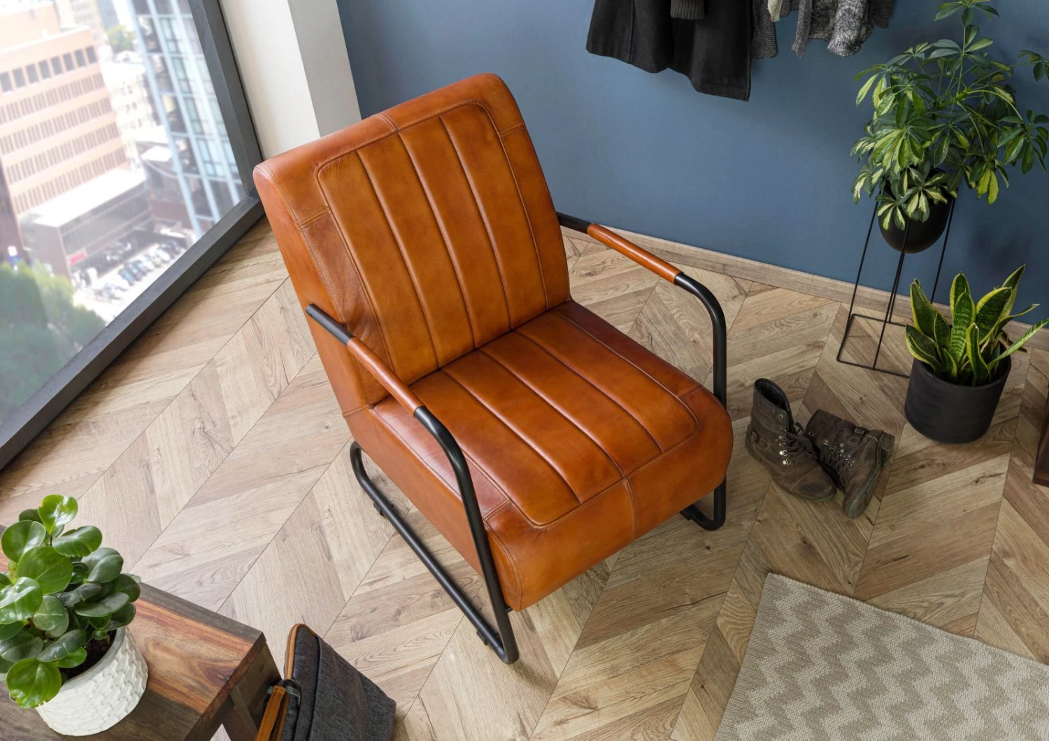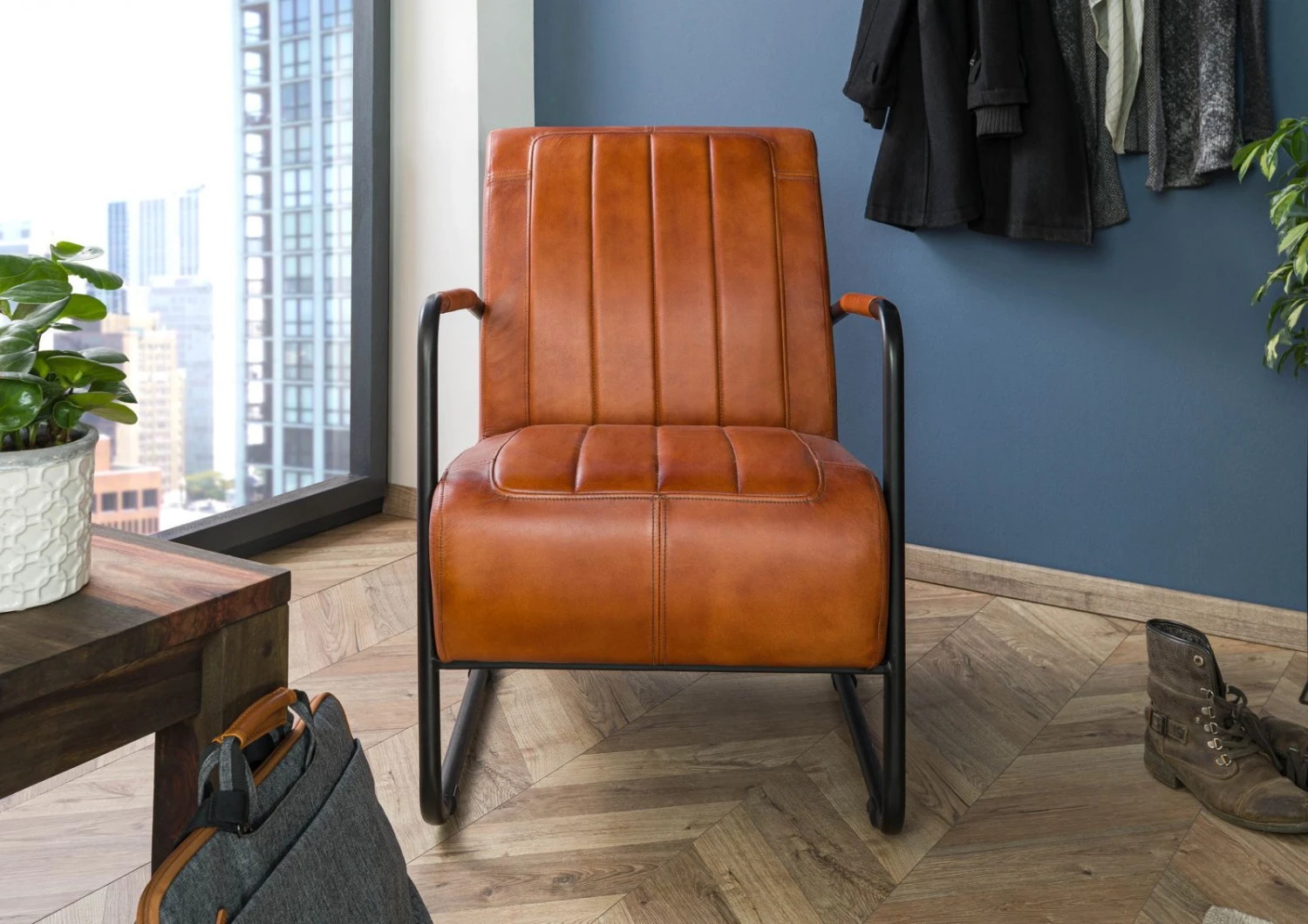 Fauteuil en cuir véritable 59x84x85 cognac IRON LABEL # 21