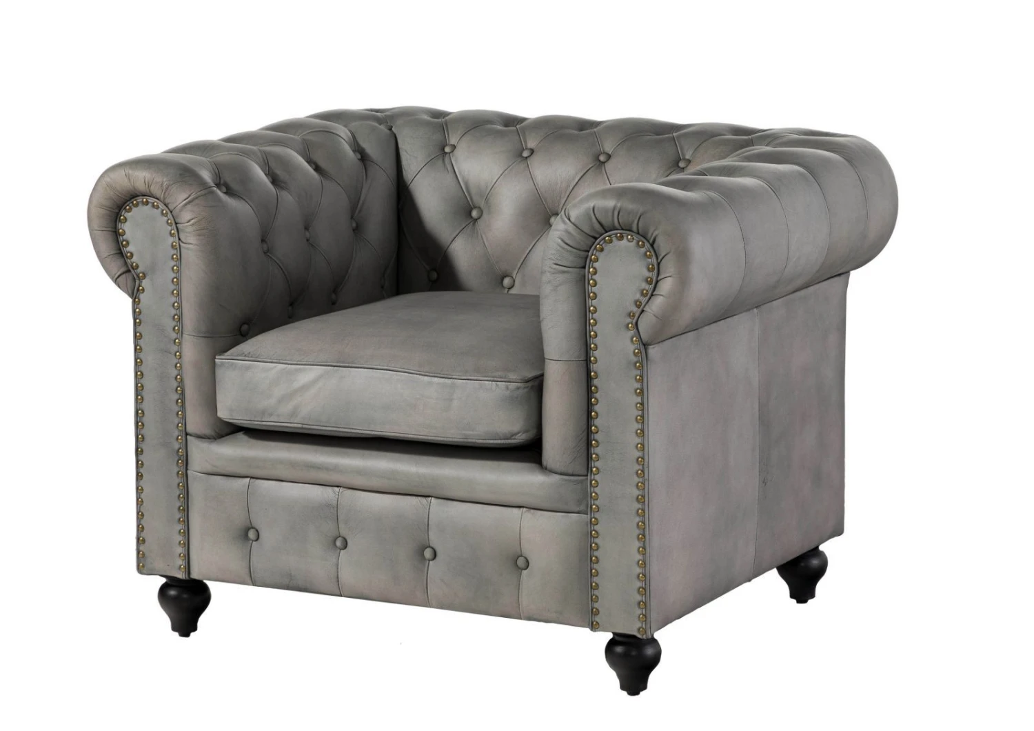 Description du produit Fauteuil en cuir véritable gris CHESTERFIELD #202