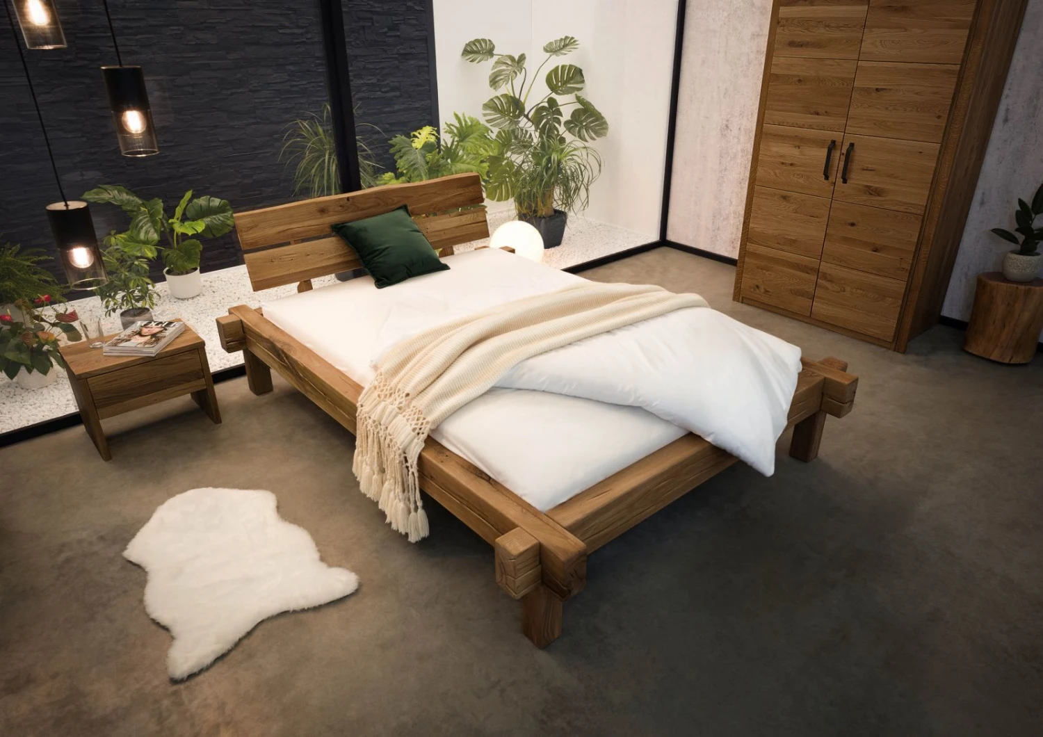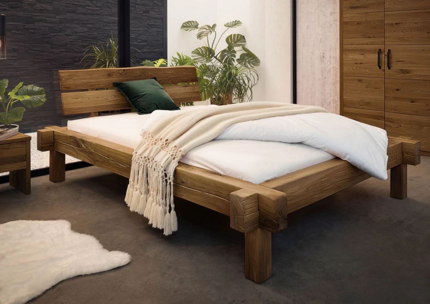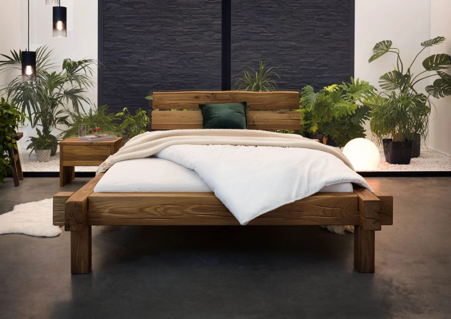 Lit à poutre 198×238 Chêne sauvage huilé Tabac JANGALI #311