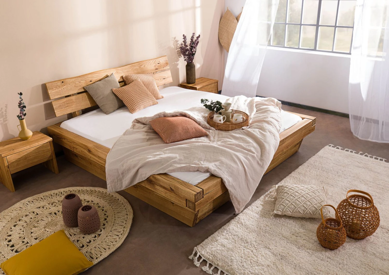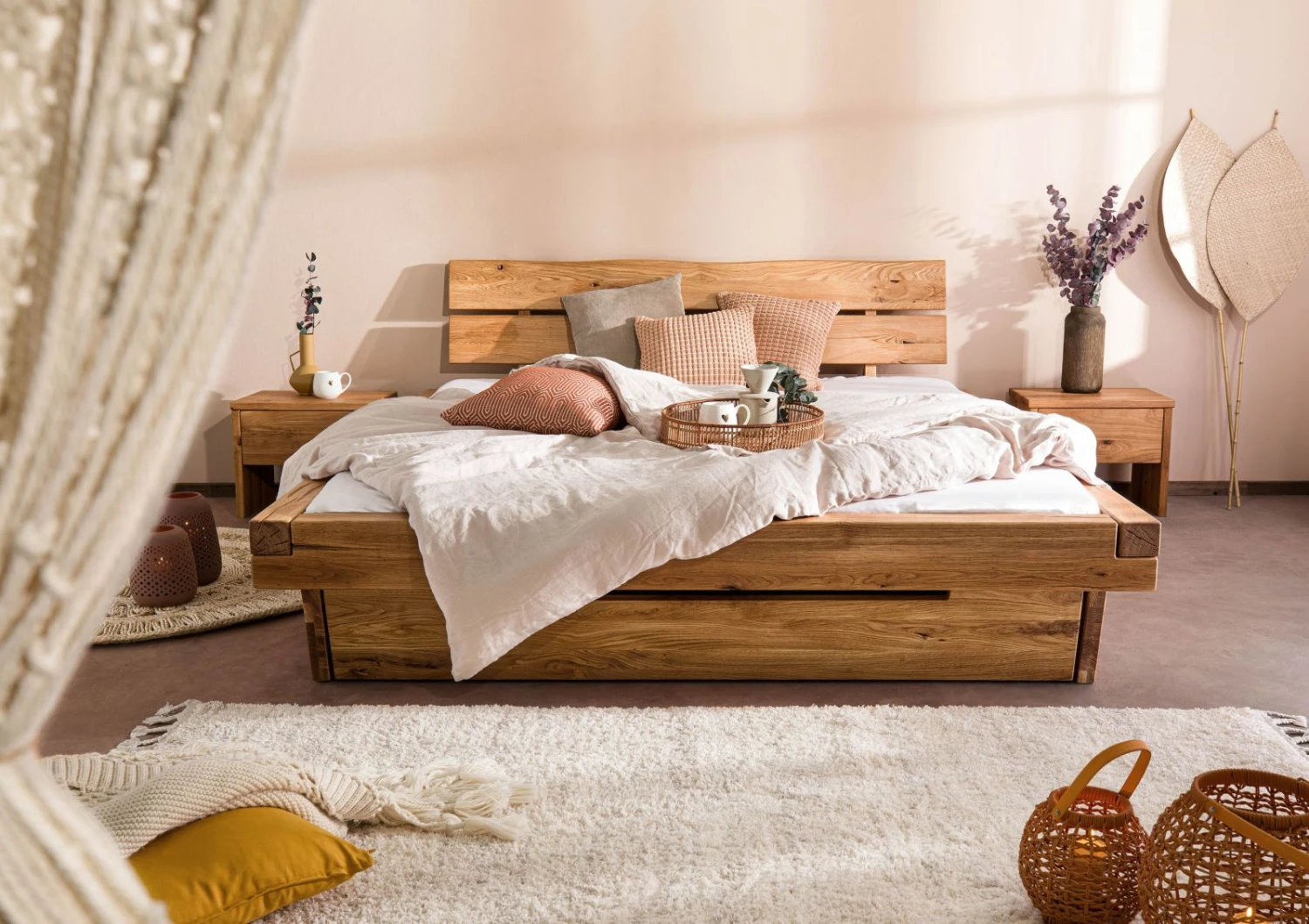 Lit à poutre avec tiroirs 180×200 Chêne sauvage huilé naturel BALKENMÖBEL #280