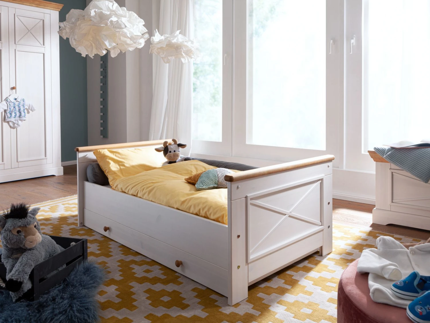 Ce tiroir est le complément parfait au lit dé enfant HANNA, il agrémente le lit d´un rangement élégant et discret.