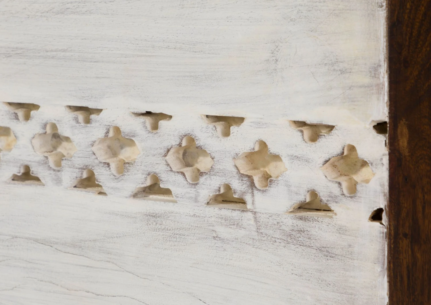 Description du produit Lit double 180×200 Manguier ciré Blanc antique CASTLE-ANTIK #401