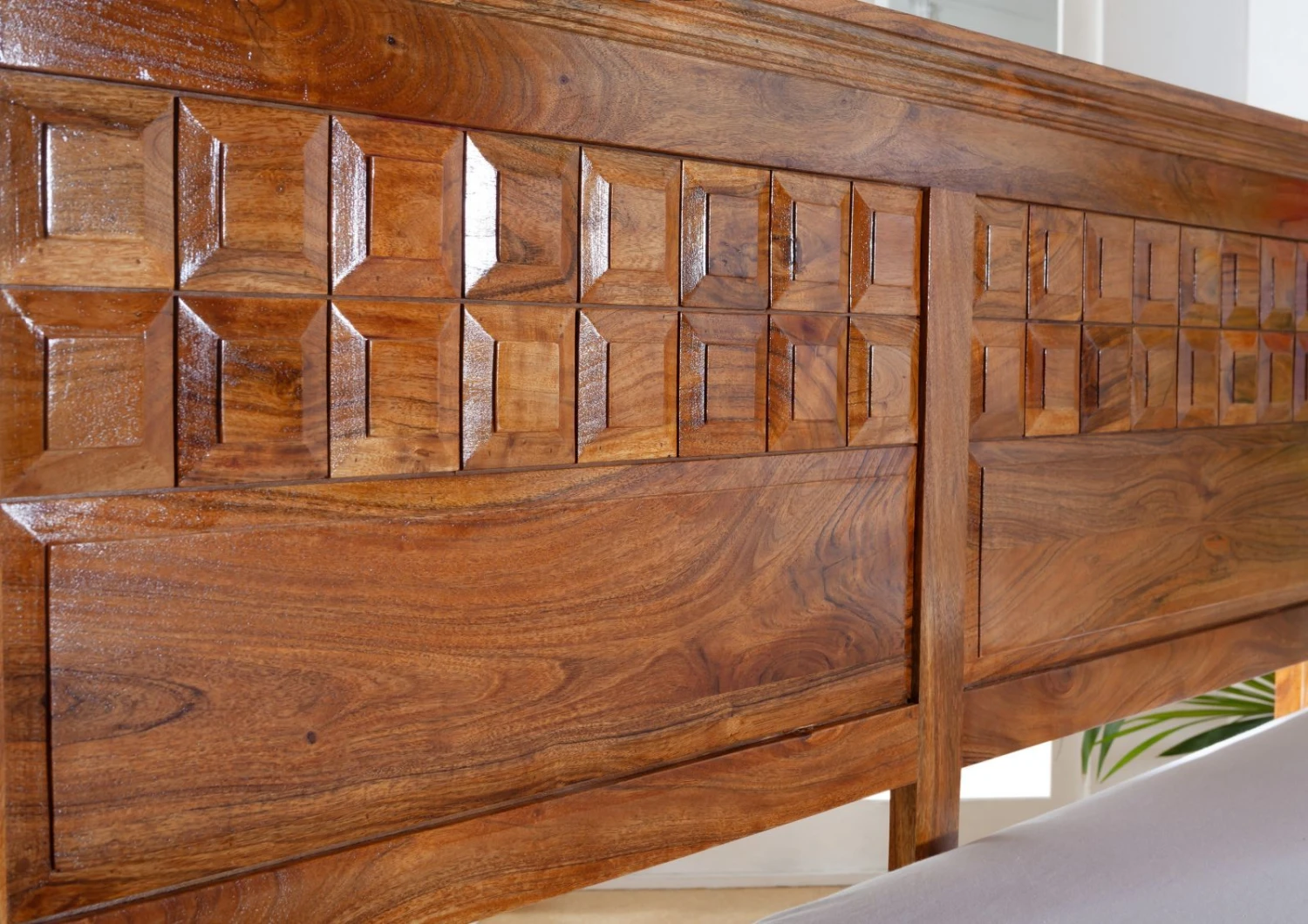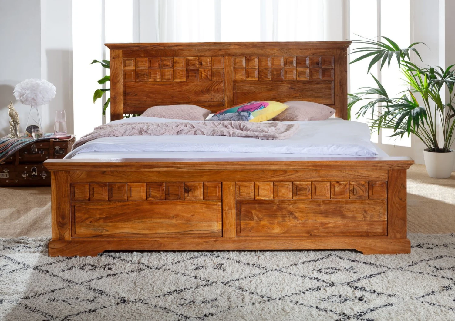 Description du produit Lit double 200×200 Acacia laqué Miel OXFORD #0311