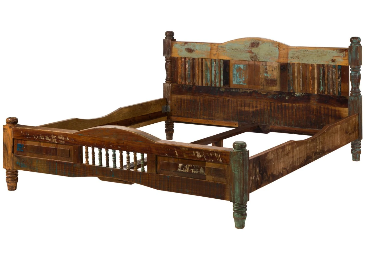 Description du produit Lit double 200×200 Bois de récupération laqué Multicolore FABLE #23