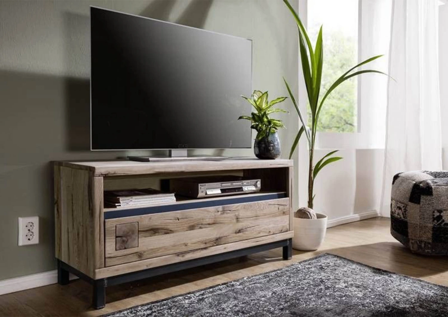 Description du produit Meuble TV 120×40 Chêne sauvage huilé Bianco VILLANDERS #212