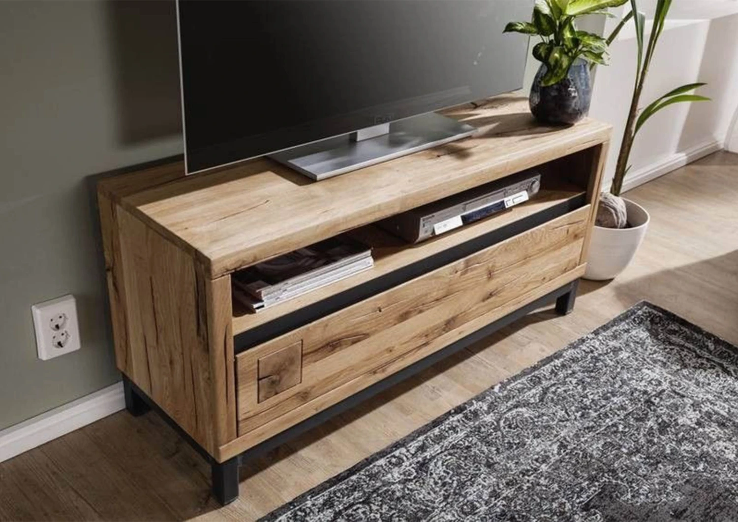 Description du produit Meuble TV 120×40 Chêne sauvage huilé Bois naturel VILLANDERS #112