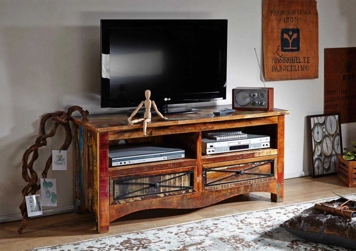 Description du produit Meuble TV 121×45 Bois de récupération laqué Multicolore NATURE OF SPIRIT #114