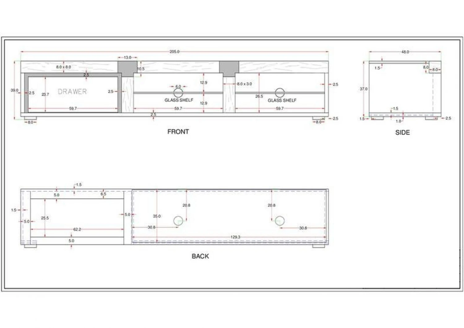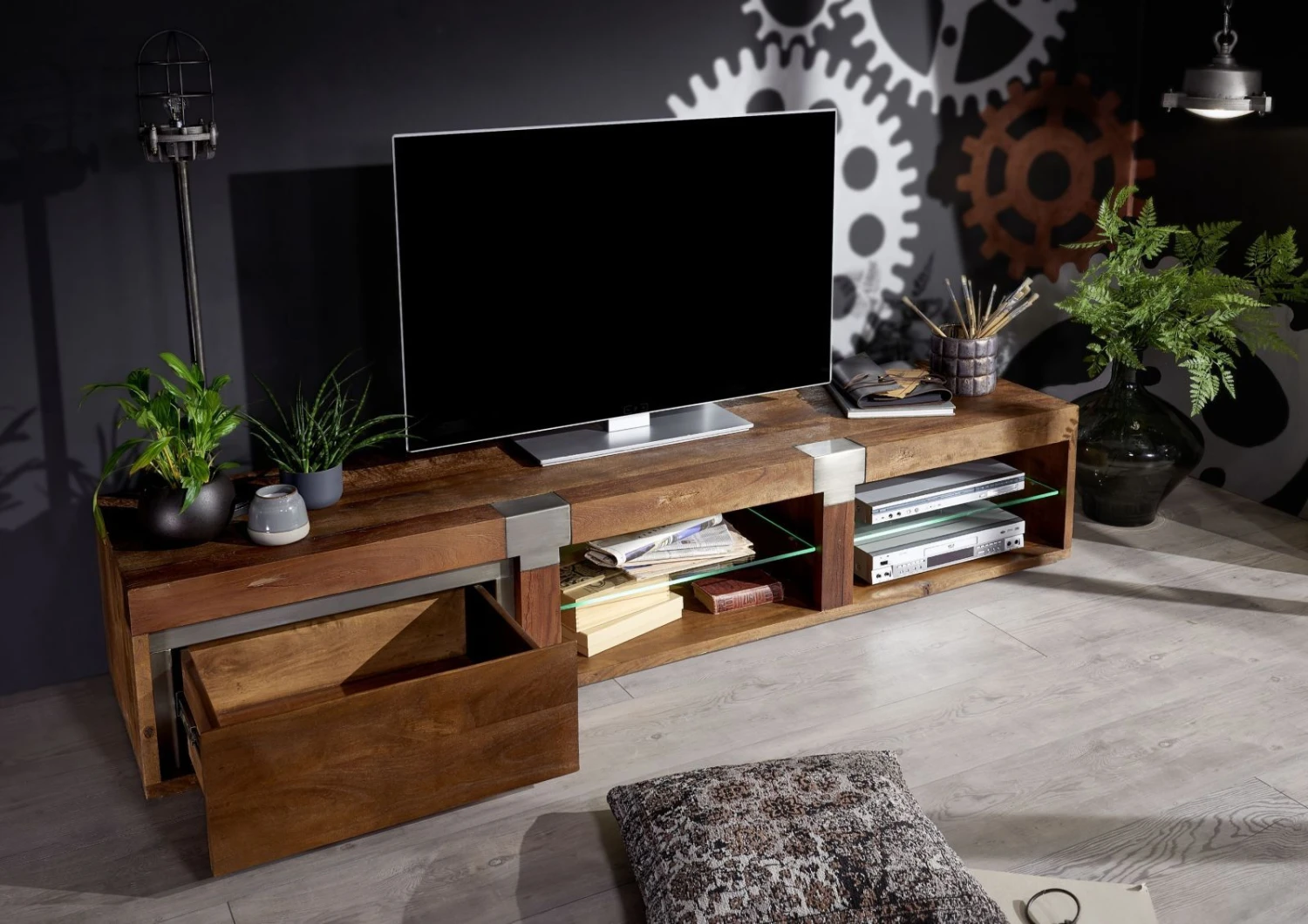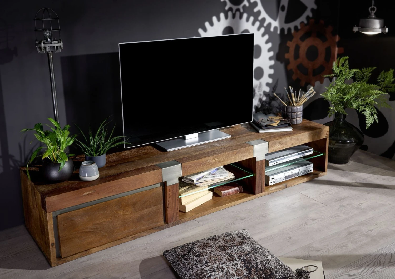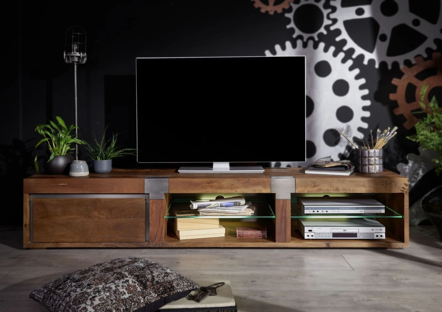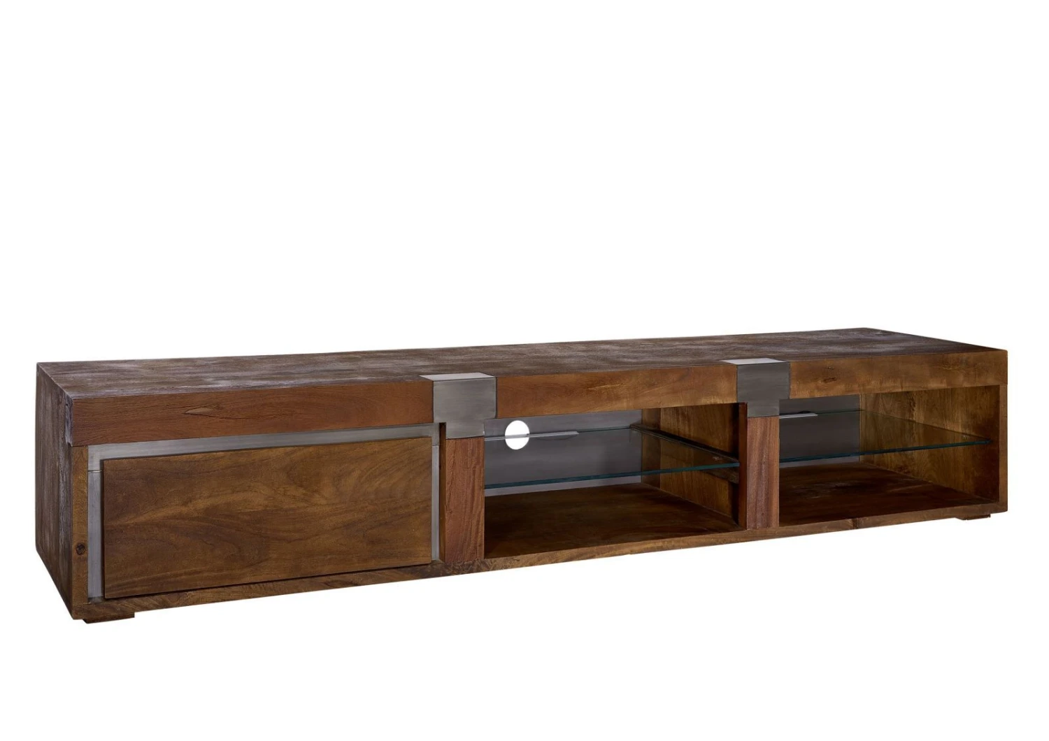 Description du produit Meuble TV 205×48 Manguier laqué Brun AMSTERDAM #03