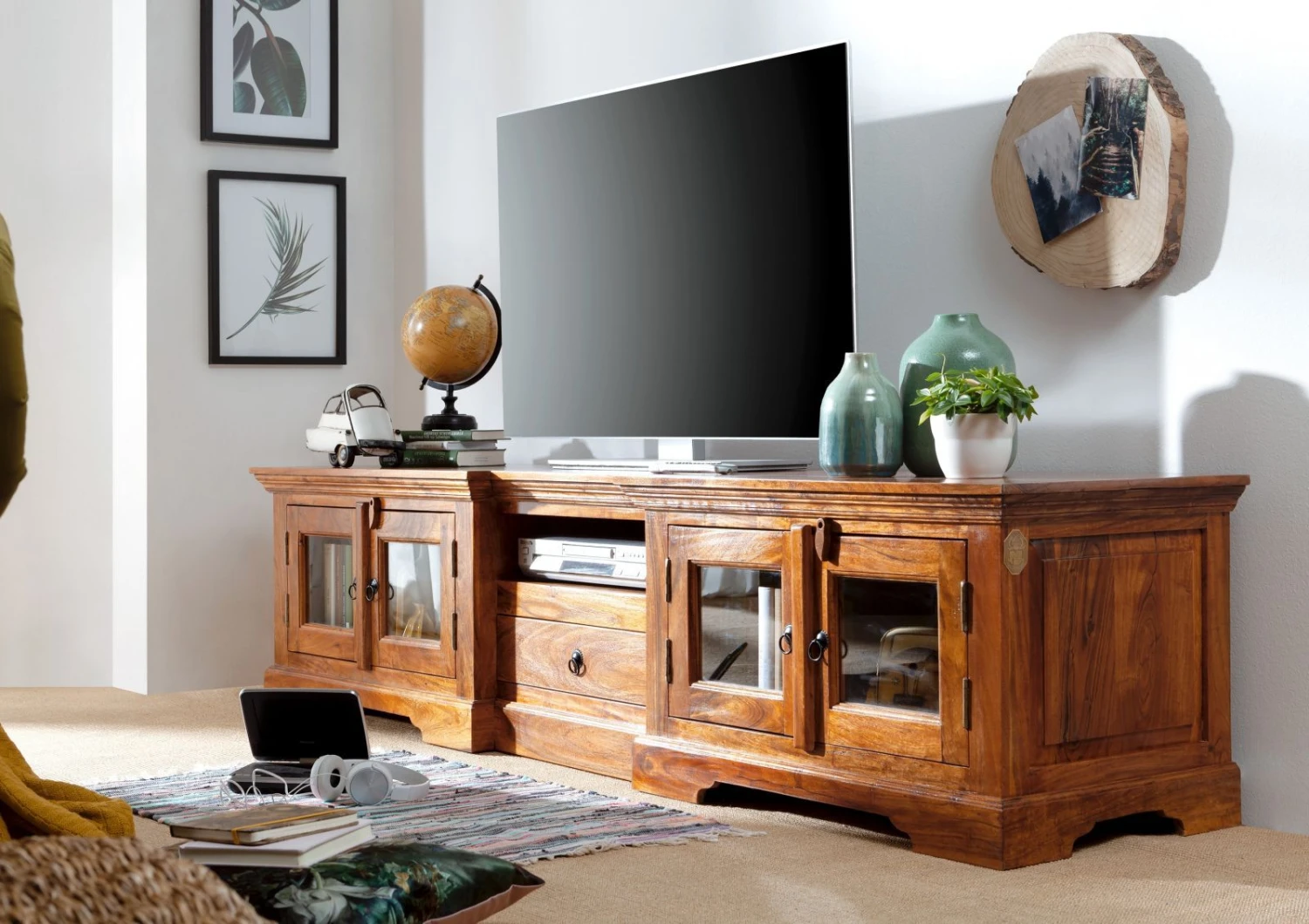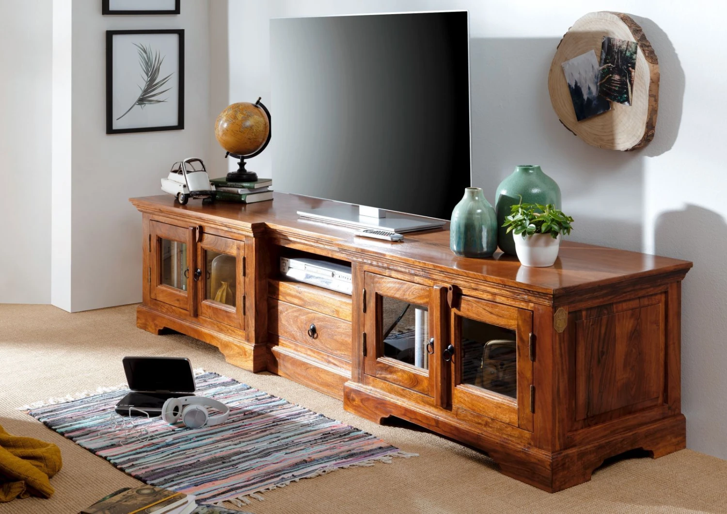 Description du produit Meuble TV 210×50 Acacia laqué Miel OXFORD #0339