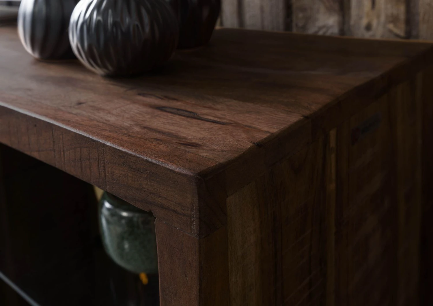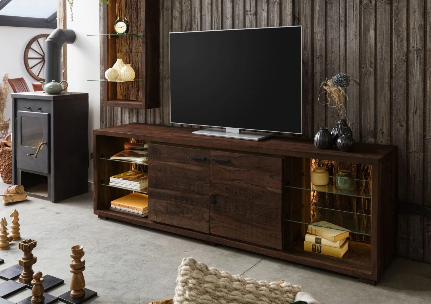 Description du produit Meuble TV en bois d’acacia laqué marron BARK #213