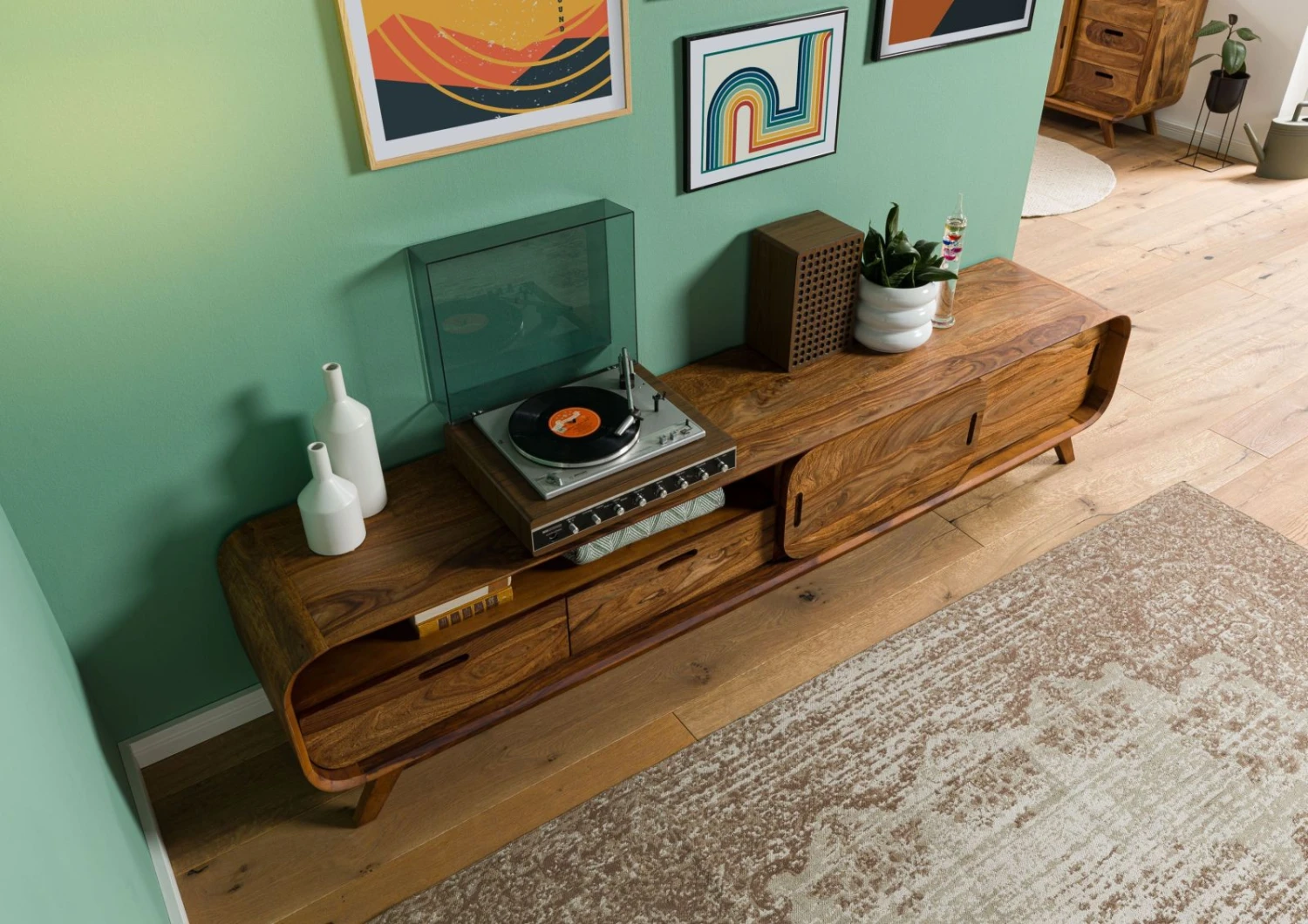 Description du produit Meuble TV en bois de Sheesham 220x40x48 marron clair laqué MAILAND #127