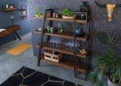 Étagère En Bois De Manguier 100x45x175, Vernis Beige, RAILWAY #396