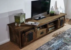 Meuble TV En Bois De Manguier 180x45x50 Marron Huilé DIAMOND #224