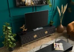 Meuble TV En Bois De Manguier / Bois De Récupération 180x47x60 Noir / Naturel Laqué DAVIS #10