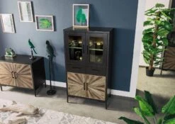 Buffet En Bois De Manguier 105x45x195 Naturel Laqué / Métal Noir BLACKBURN #104
