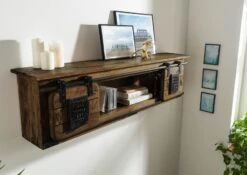 Étagère Murale En Bois De Manguier / Bois De Récupération 115x30x45 Naturel Laqué RAILWAY LUX #150