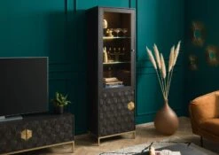 Vitrine En Bois De Manguier / Bois De Récupération 110x47x182 Noir / Naturel Laqué DAVIS #31
