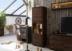 Vitrine En Bois D’acacia Et Bois De Récupération Laqué Marron CITY #03
