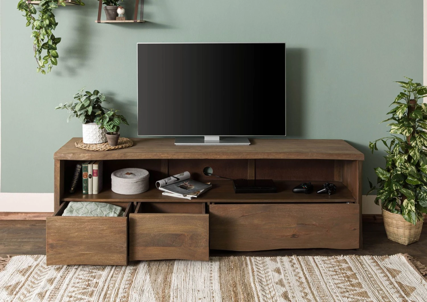 Description du produit PURE MANGO #120 Meuble TV en manguier – huilé / marron 190x50x60