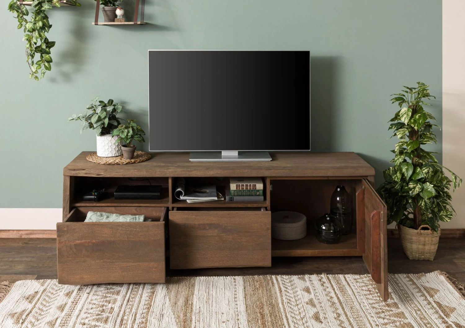Description du produit PURE MANGO #123 Meuble TV en bois de manguier – huilé / marron 178x48x58
