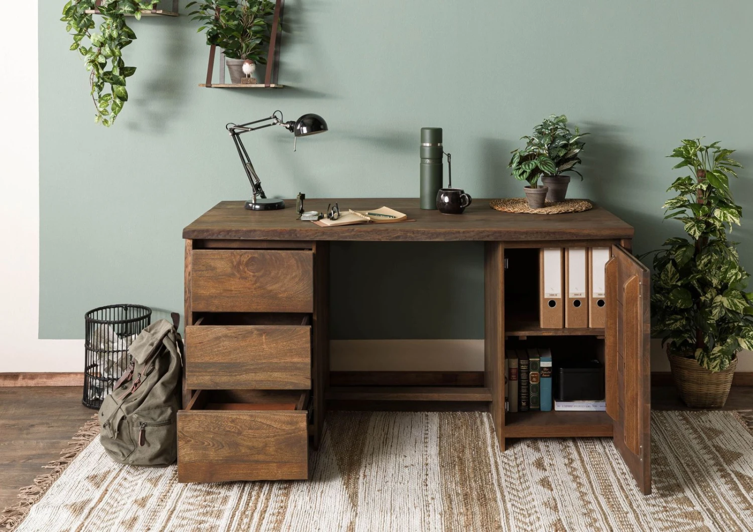 Description du produit PURE MANGO #210 Bureau en bois de manguier – huilé / marron 150x75x78