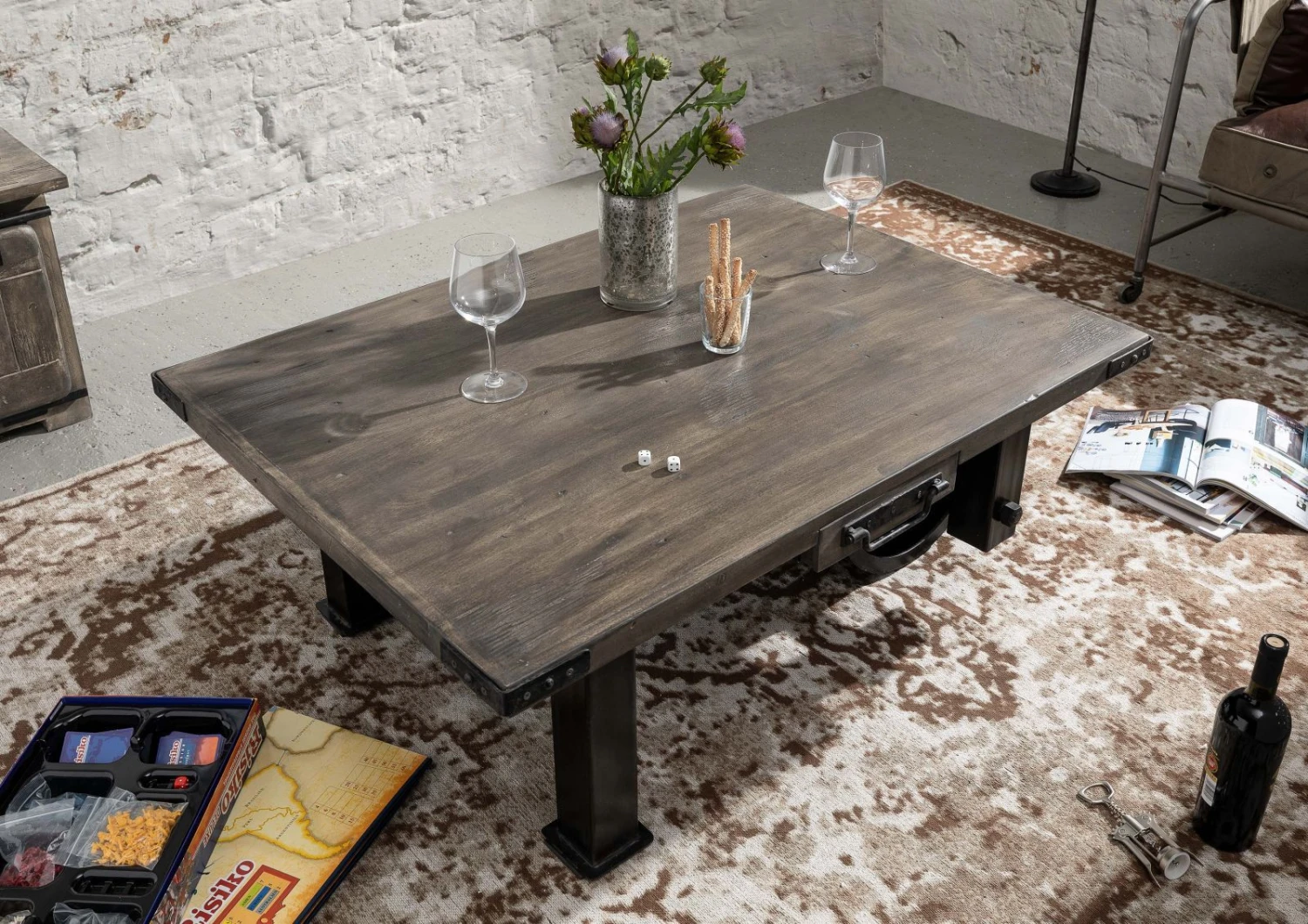 Description du produit Table basse 110×80 Manguier laqué Gris RAILWAY #205