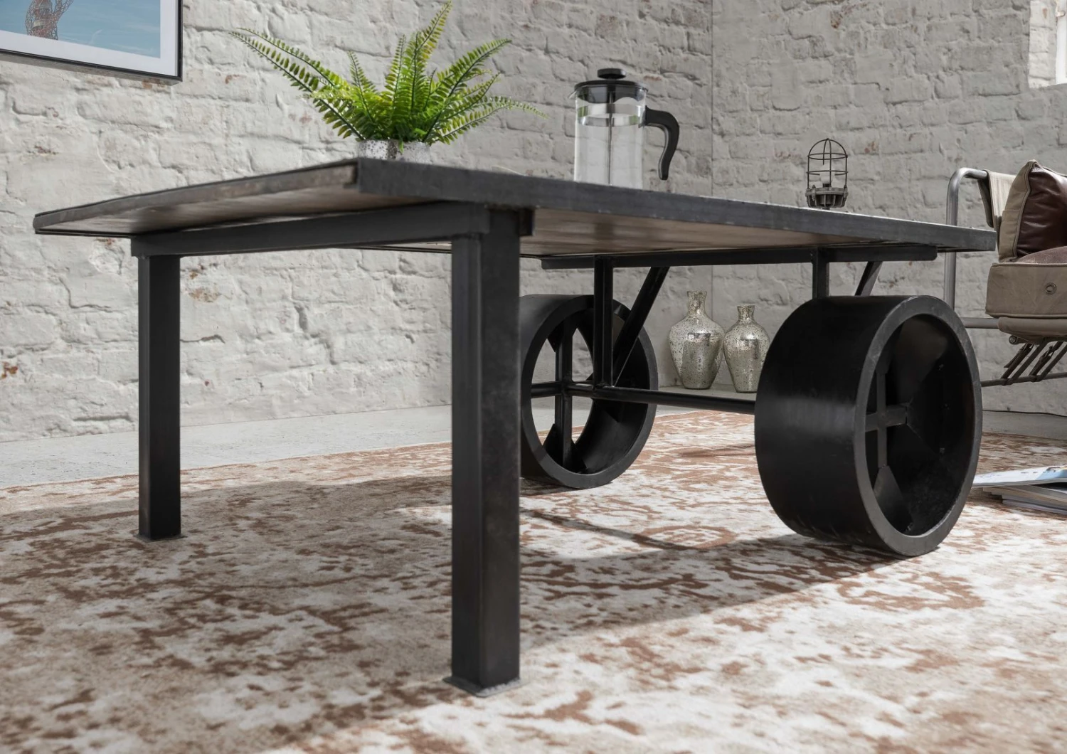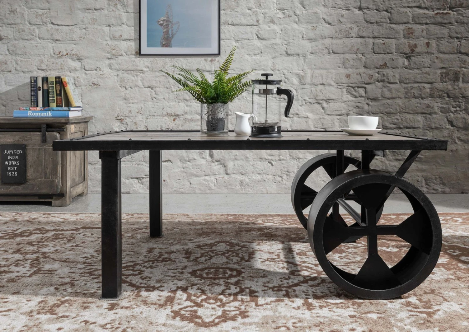 La rencontre entre le bois de manguier et des éléments en effet fonte fera de votre intérieur un lieu atypique et original. Cadres, roues et finitions métalliques, vous feront voyager dans le temps afin de revivre à lépoque de la construction des chemins de fer. Ces meubles créeront chez-vous une ambiance industrielle unique ainsi quune décoration absolument non-conventionnelle. Jouez la carte de loriginalité grâce à notre collection RAILWAY et offrez-vous des solutions intérieures individuelles.