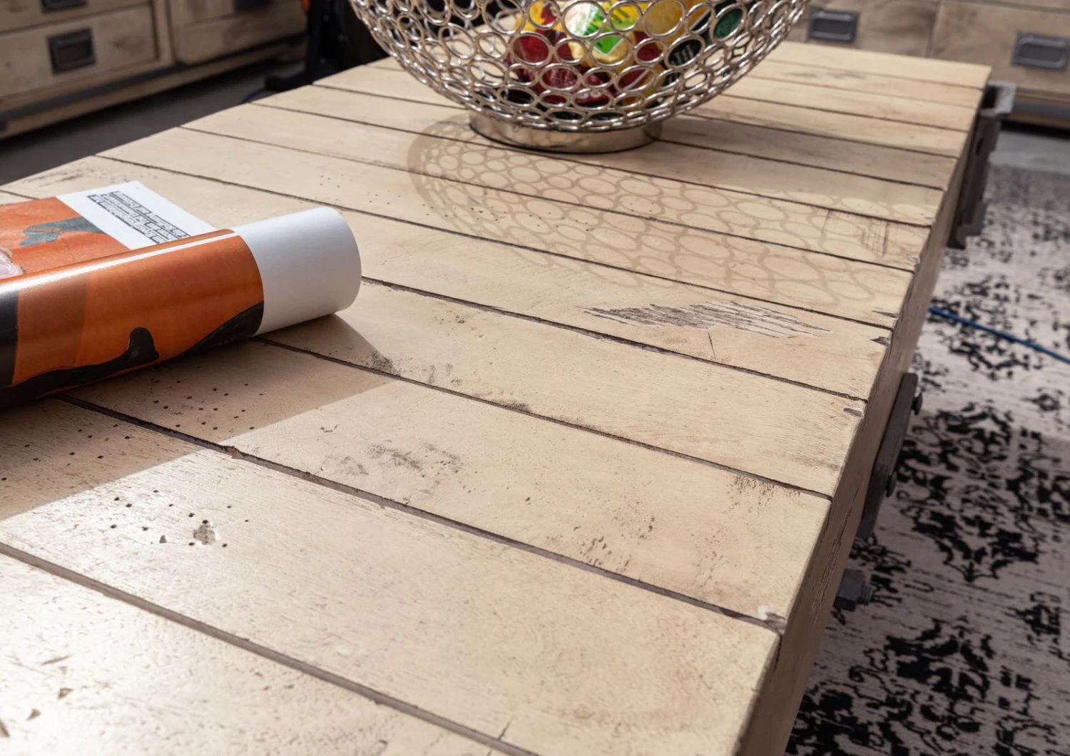 Description du produit Table basse 120×60 Manguier laqué blanchi RAILWAY #360