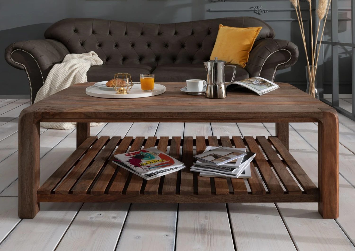 Description du produit Table basse 120×80 Palissandre huilé Gris taupe BUENO #2001