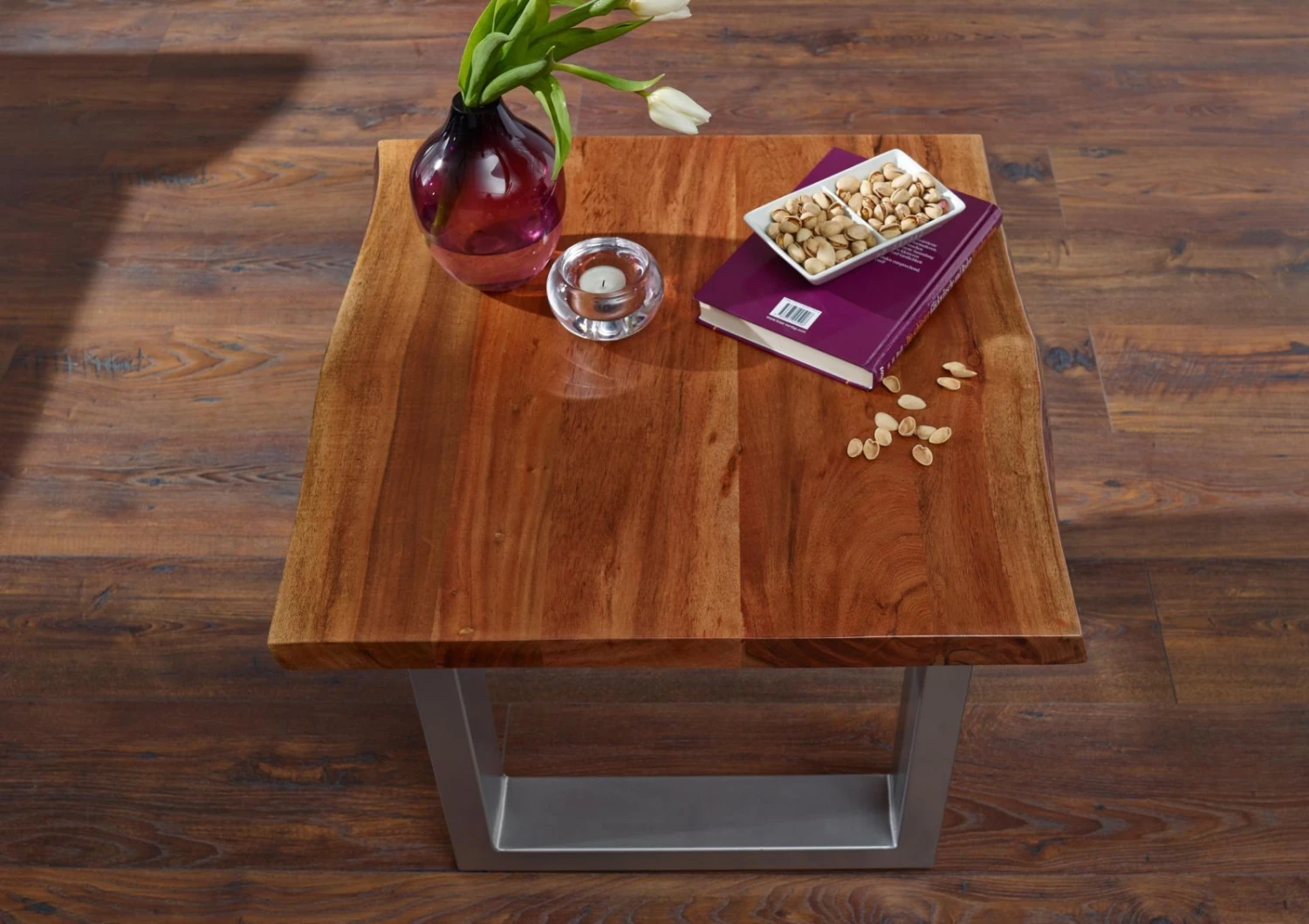 Description du produit Table basse 60×60 Acacia laqué Noisette FREEFORM #09