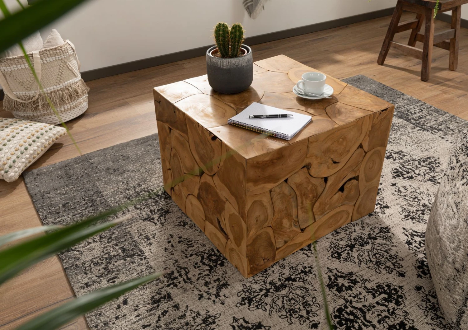 Description du produit Table basse 60×60 Teck laqué Teck naturel UNIKA #182