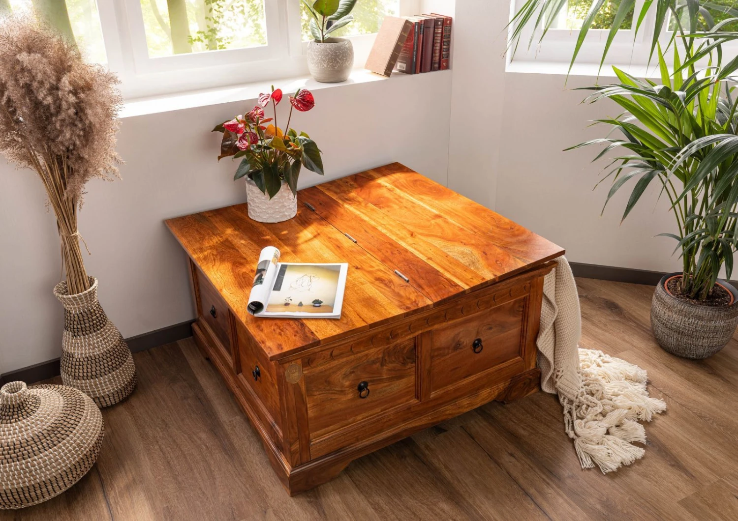 Description du produit Table basse 90×90 Acacia laqué Miel OXFORD #0415
