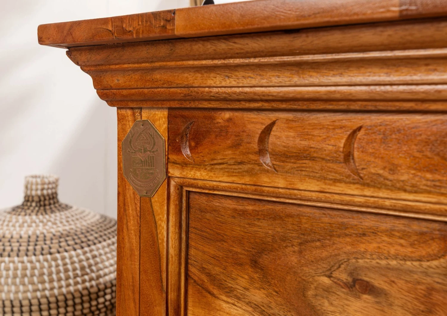 Qu´il soit de couleur nougat ou de couleur miel, ce mobilier contribuera à créer chez-vous une atmosphère unique et majestueuse. Inspirée de l´époque de la conquête des nouvelles terres, la série OXFORD évoque avant tout le charme et la beauté des prairies africaines. Produits de manière artisanale, ces meubles vous donneront lopportunité dembellir votre intérieur et dy recréer une ambiance à la fois unique et remplit dinfluences exotiques.