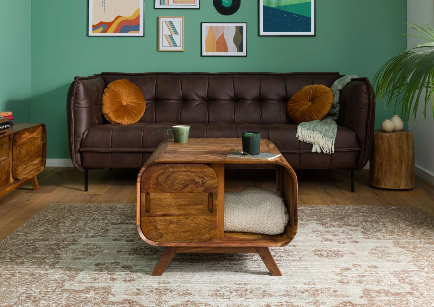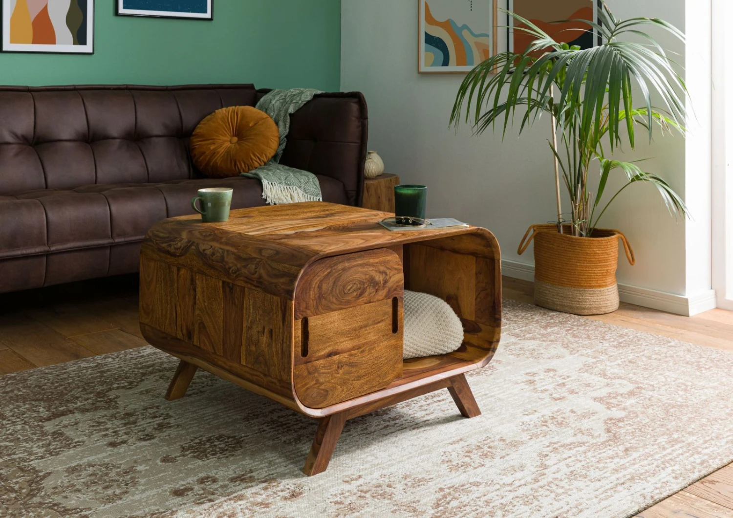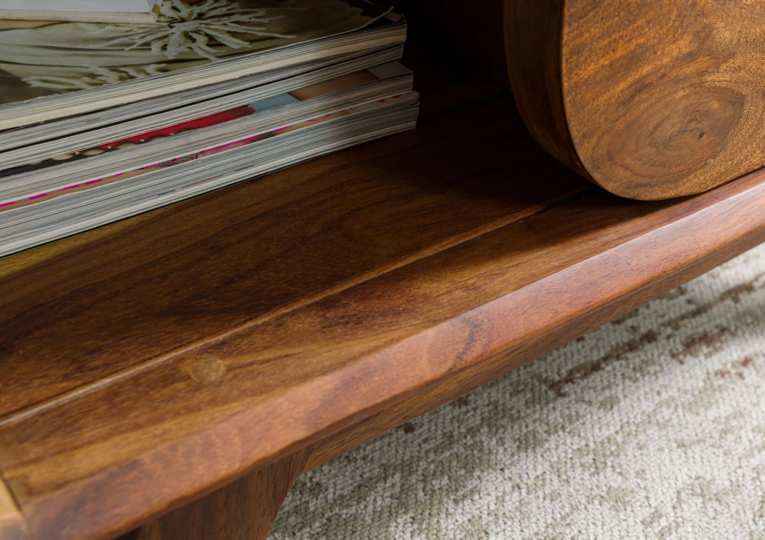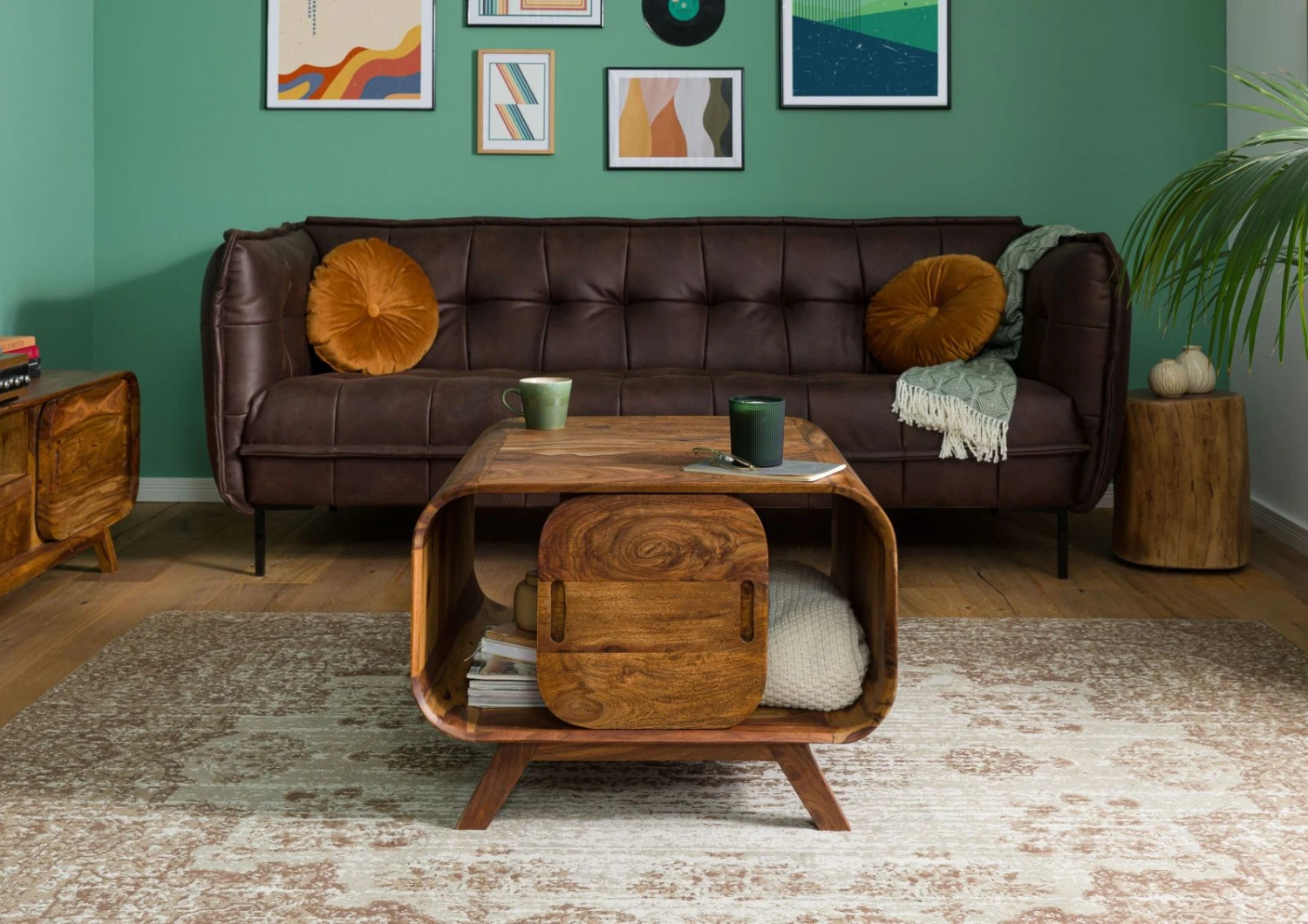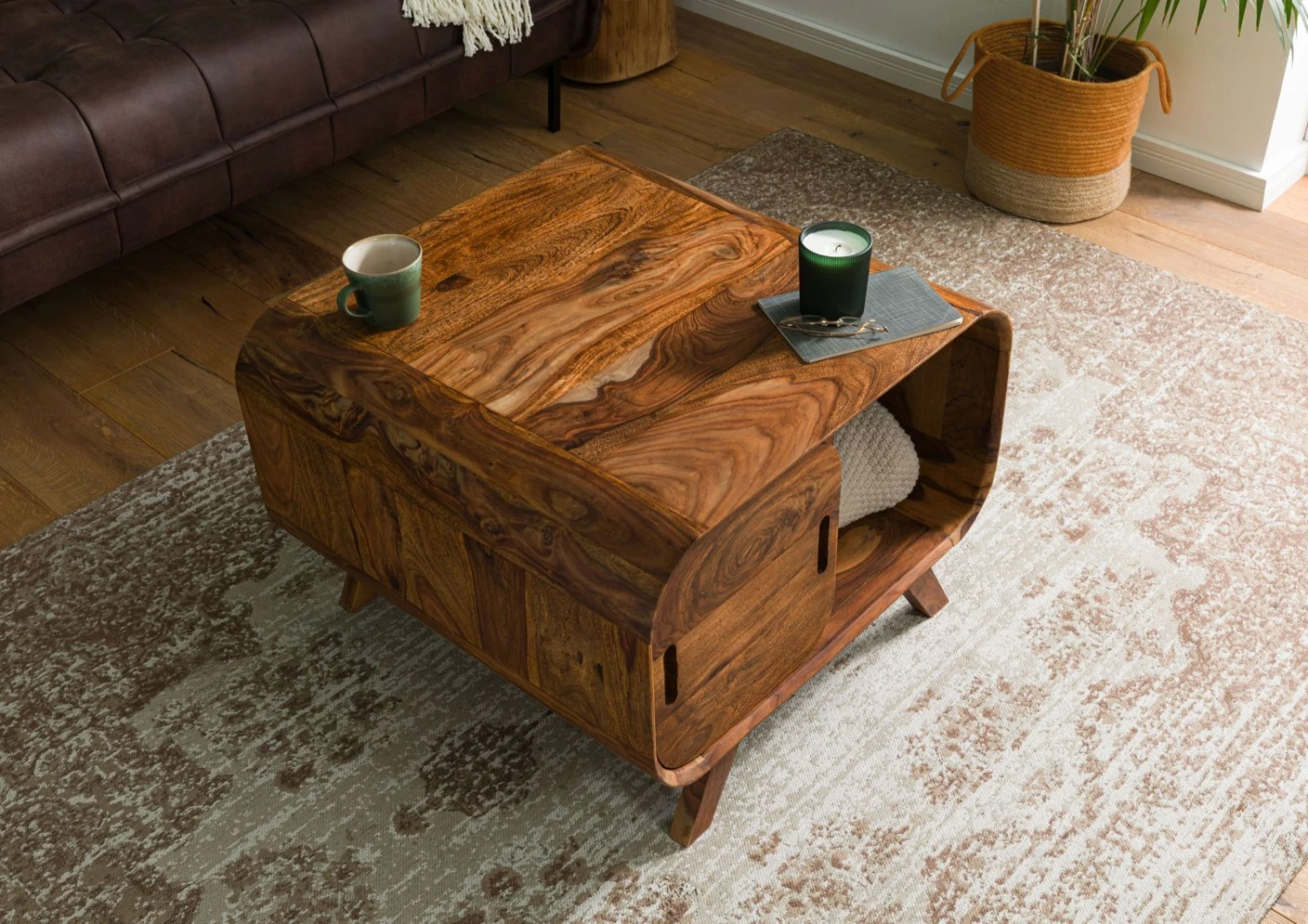 Description du produit Table basse en bois de Sheesham 70x70x50 marron clair laqué MAILAND #133