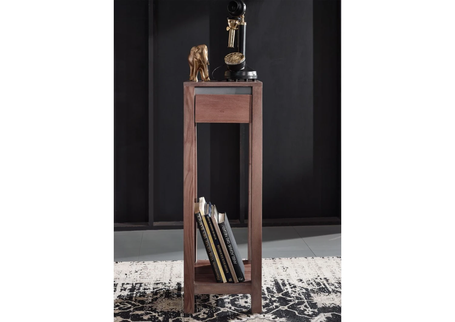 Découvrez toute l´élégance du bois de palissandre (Sheesham) de haute qualité combinée à des éléments métalliques discrètement intégrés aux meubles de cette série SYDNEY et laissez-vous surprendre par leurs surfaces chatoyantes. Ces meubles sont travaillés de telle sorte que l´aspect naturelle du bois, la structure, les nuds et les petites fissures naturelles soient délibérément conservés rendant ainsi chacune de ces pièces absolument uniques. Les particularités de cette collection moderne et sobre apportent élégance et finesse à cette série remarquable. Cette gamme de meuble propose des alternatives pour un salon, une salle à manger, une bibliothèque ou un bureau, et est complétée avec de nombreux meubles d´appoints. Vous pourrez choisir entre deux couleurs différentes : noble unique et smoked oak.