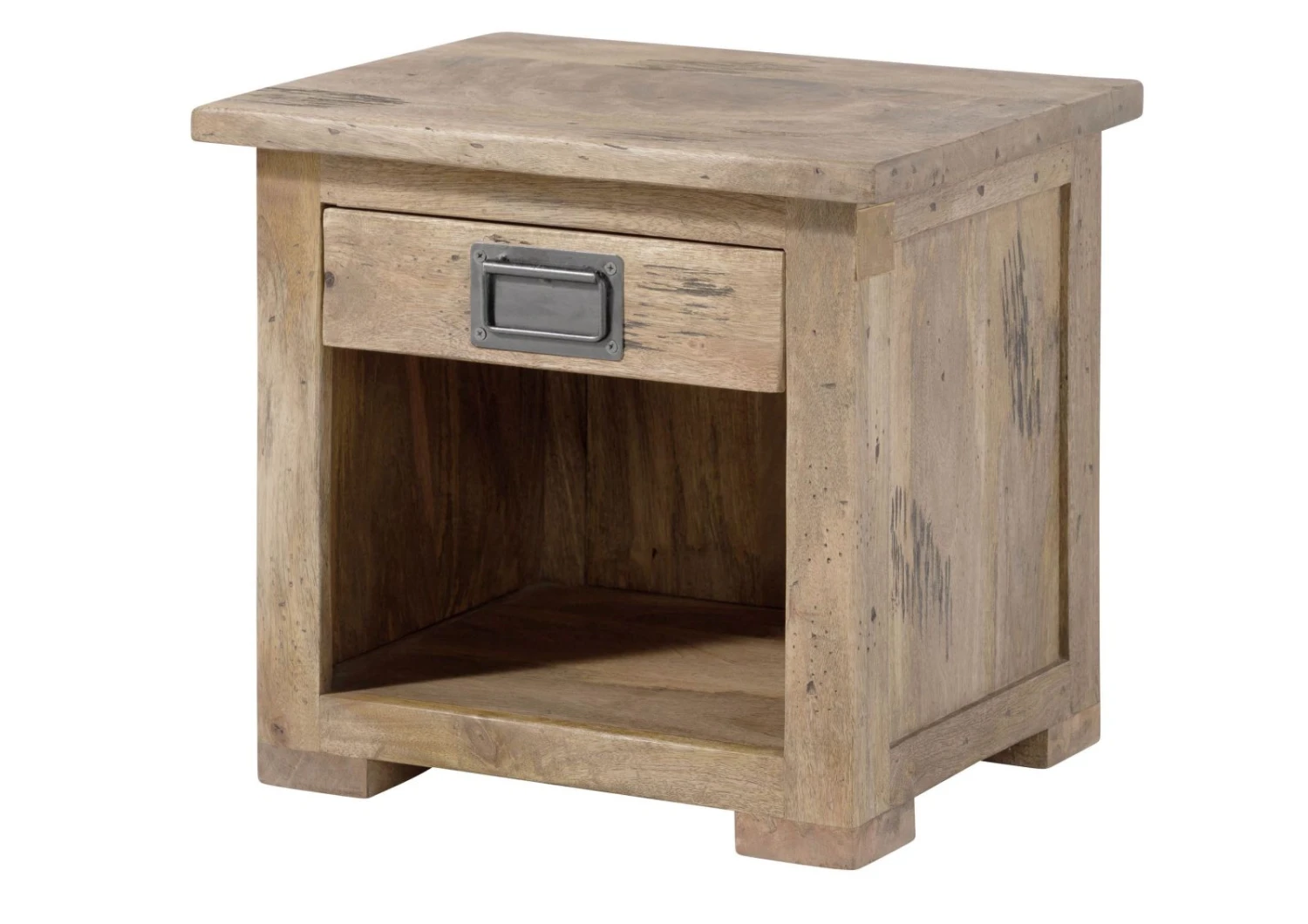 - Bois de manguier dans un style industriel : grâce à son design exceptionnel, cette table de chevet se distingue des autres meubles de chambre à coucher