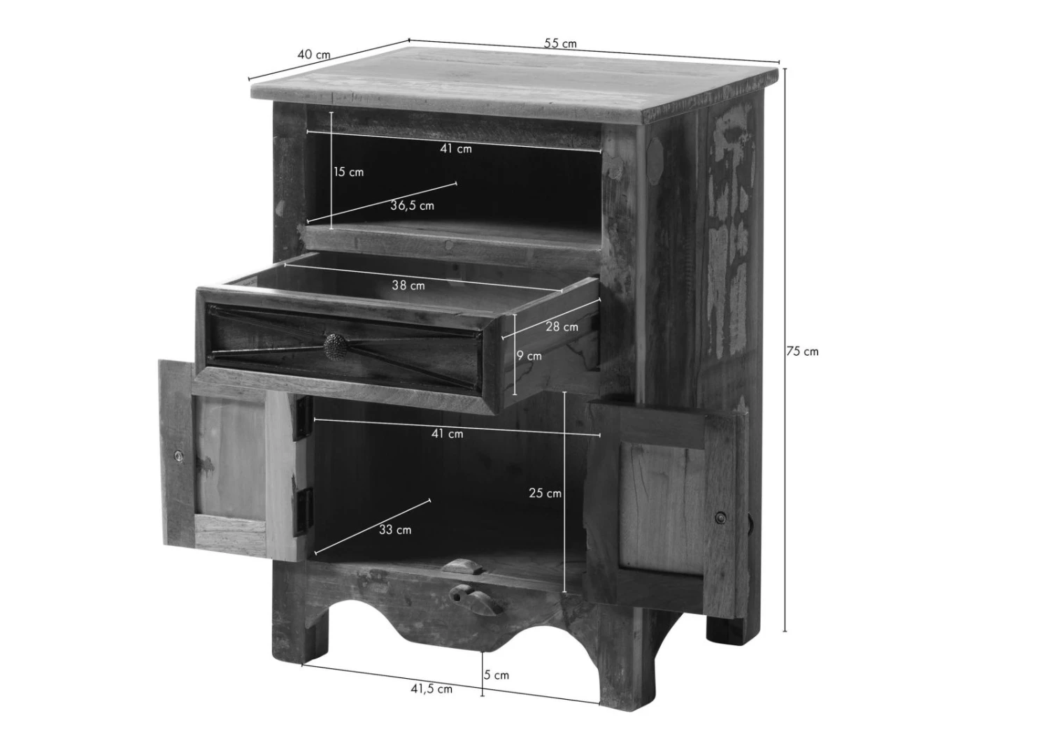 55x40x75 cm (LxPxH)