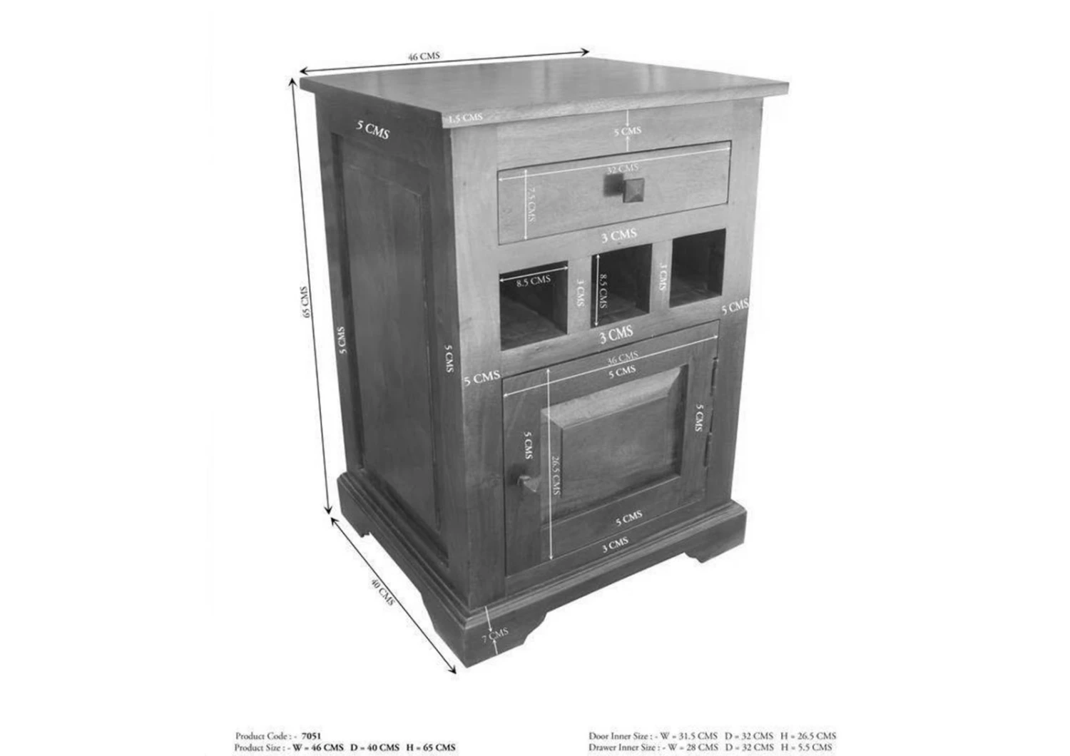 46x40x65 cm (LxPxH)