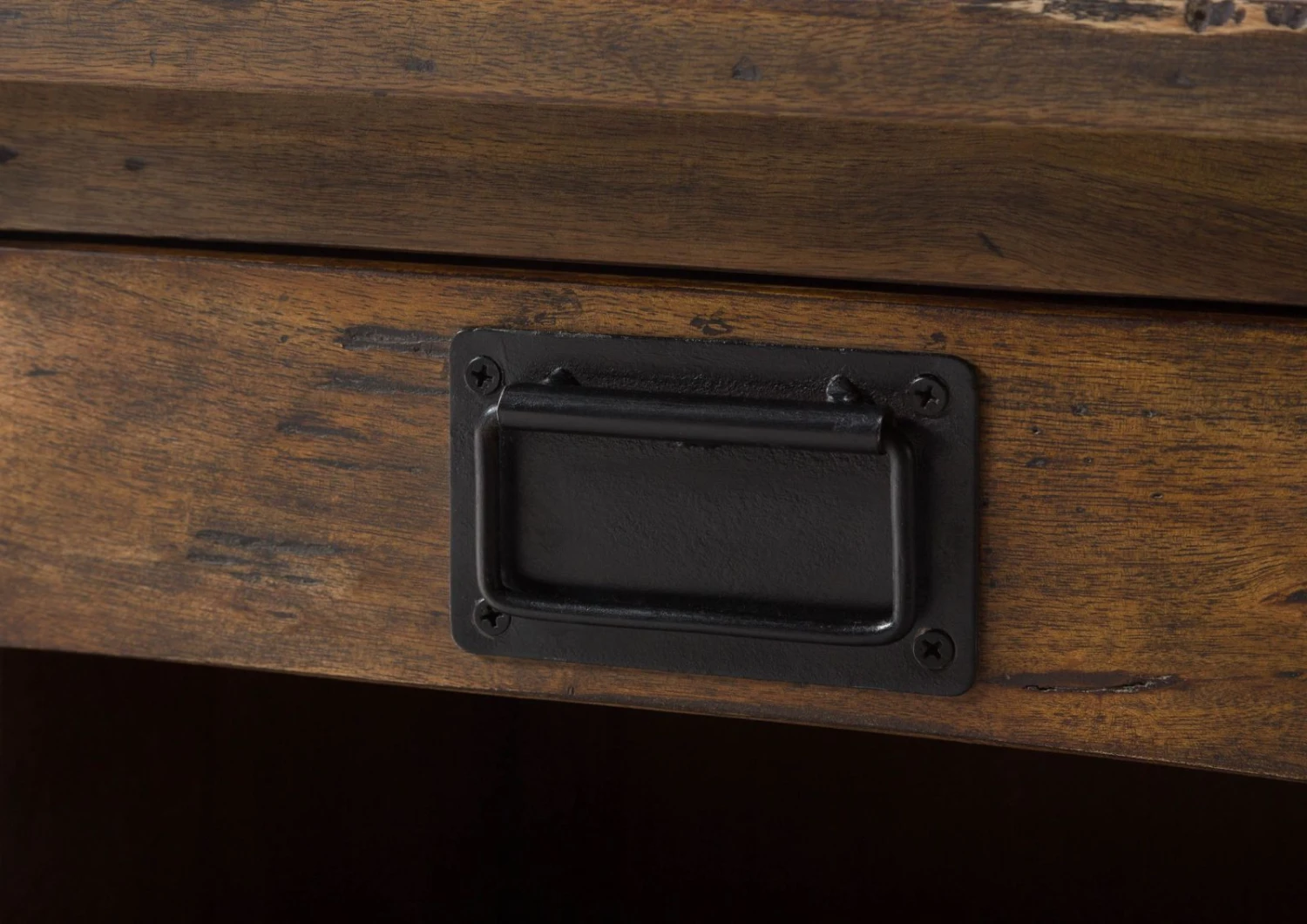 - la robuste poignée en métal noir du tiroir s’harmonise avec le veinage marqué du bois