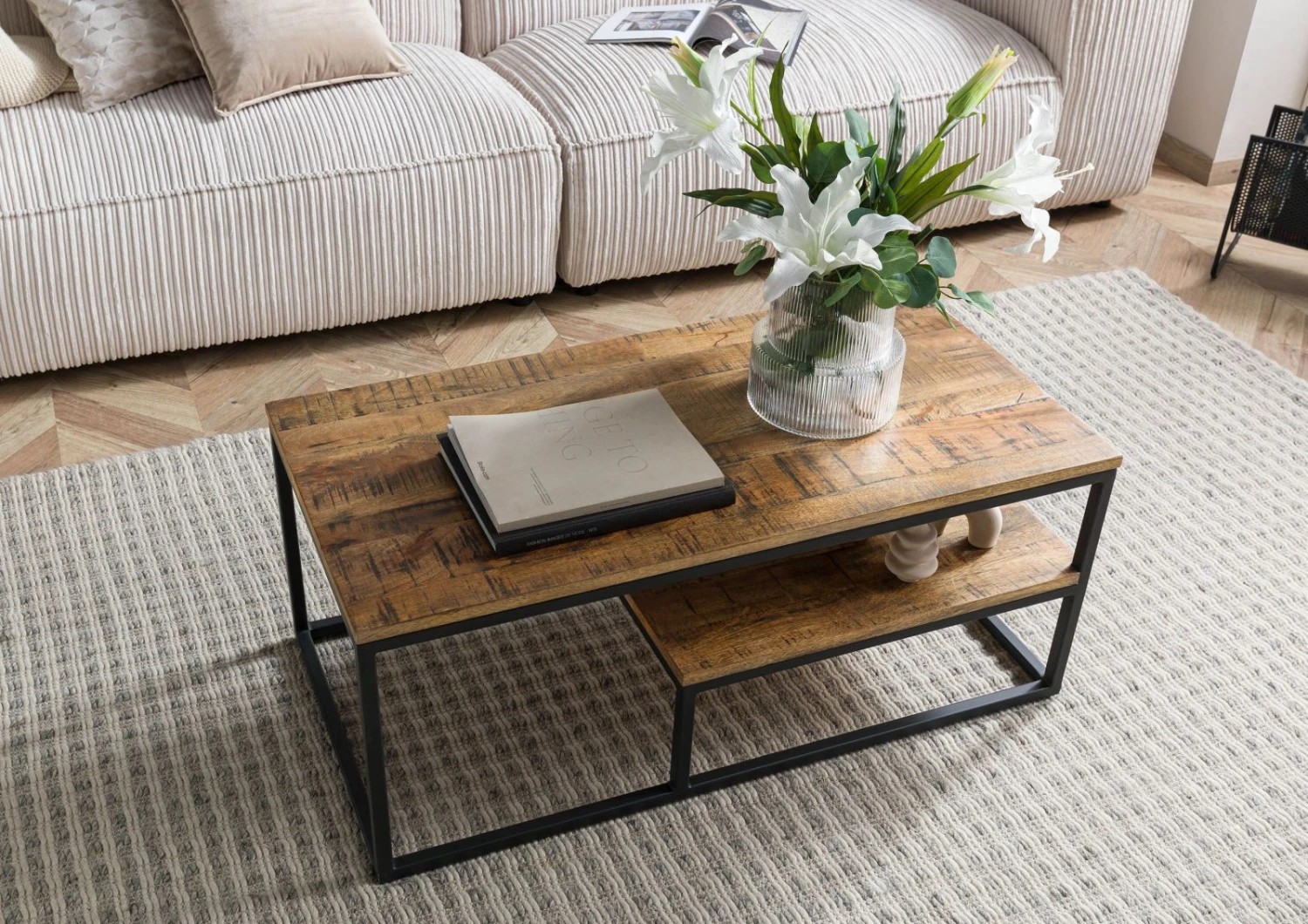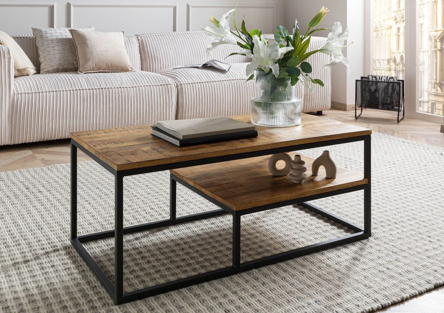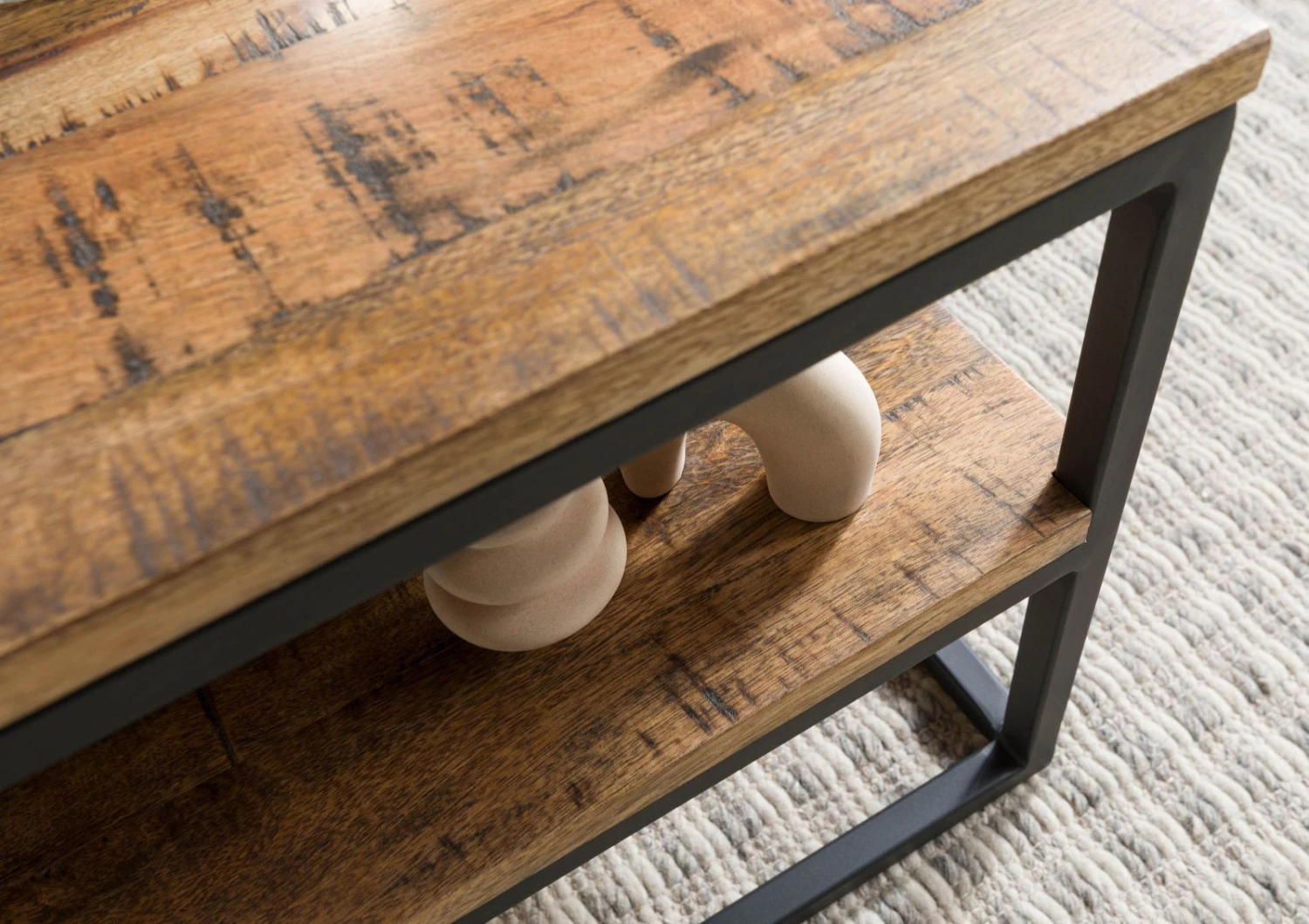 Description du produit Table de Salle de Séjour en bois de Manguier 100x50x43 marron clair huilé LOUNGE COLLECTION #101